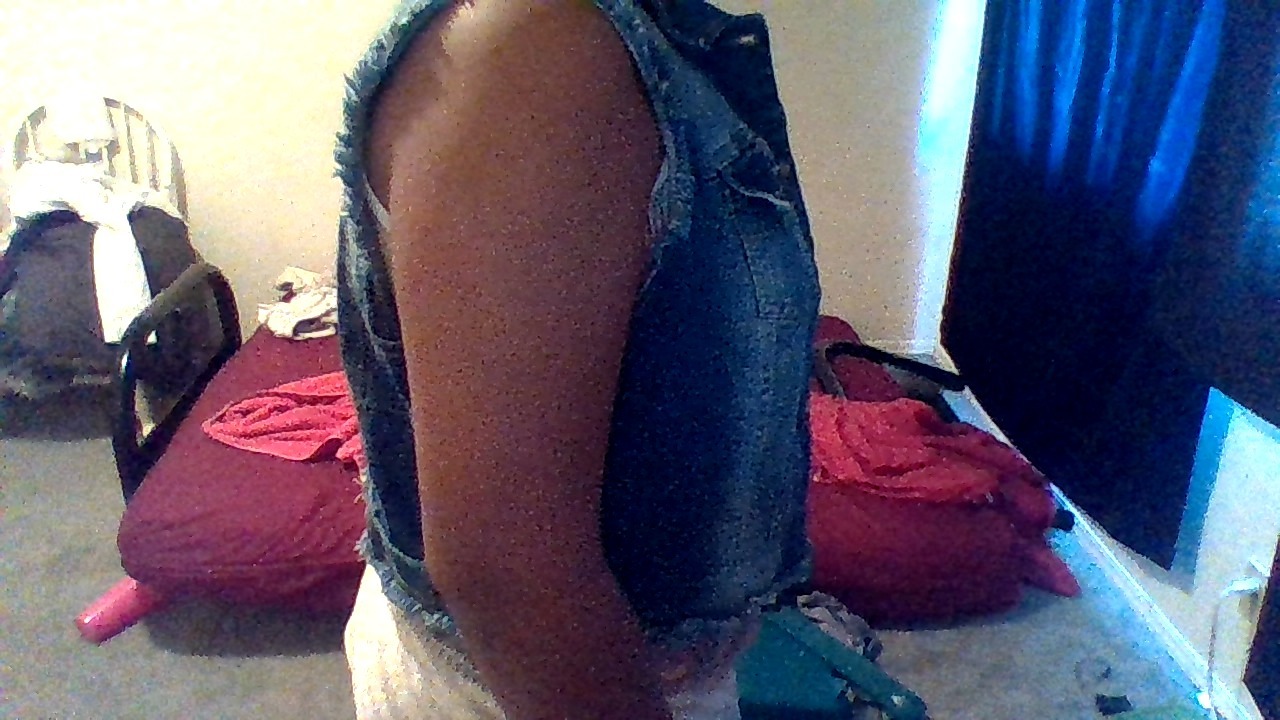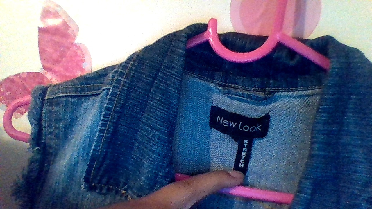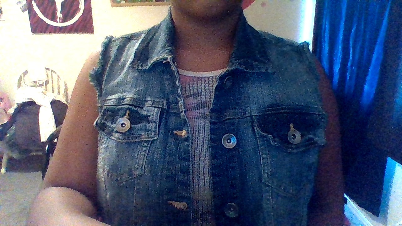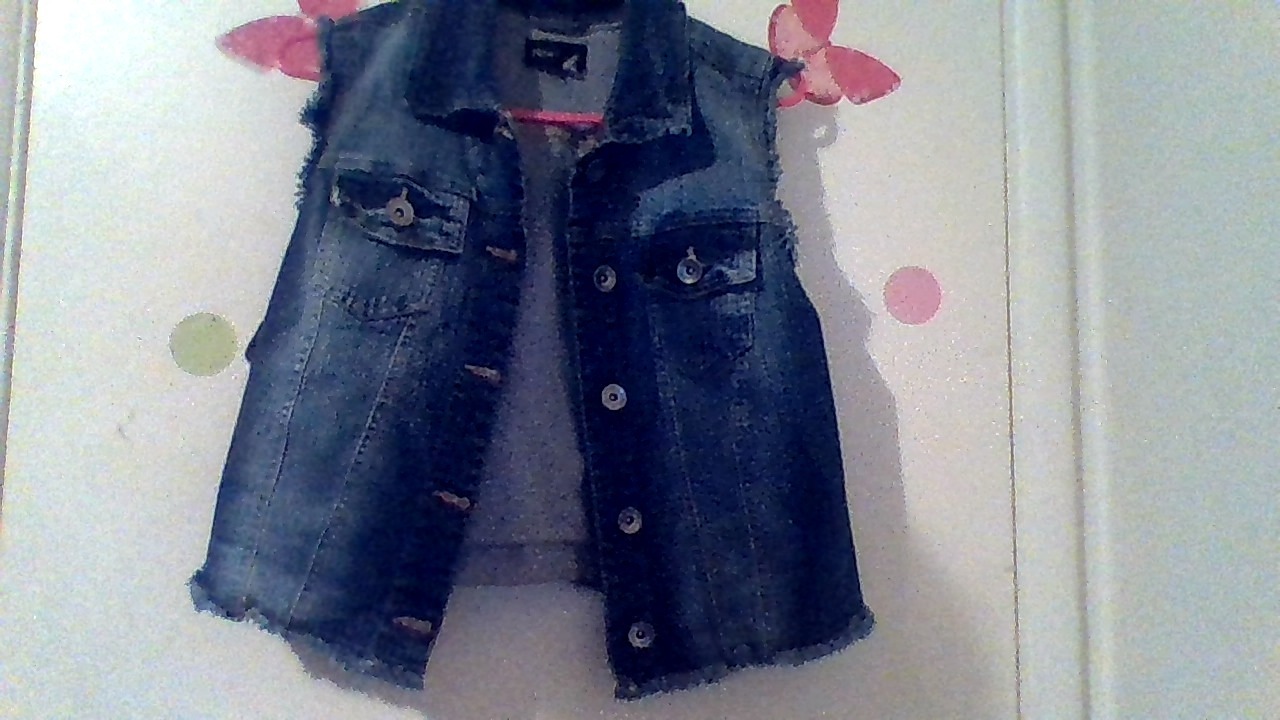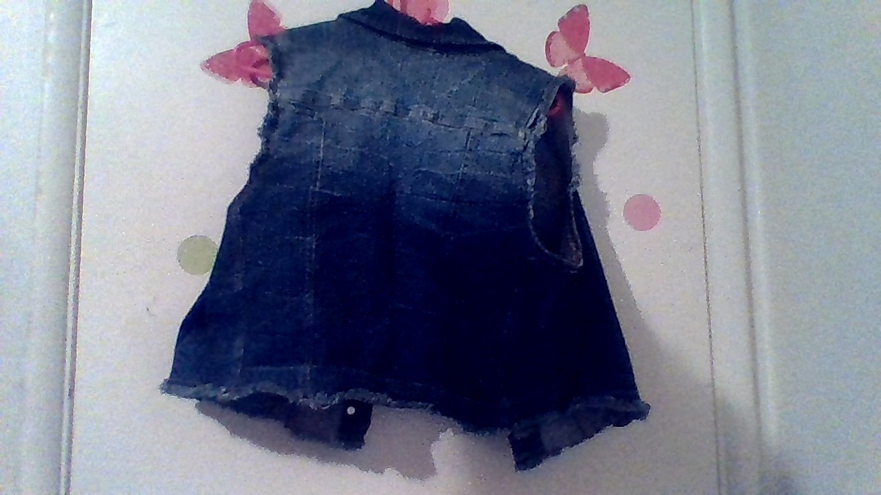 It is an jean jacket that is a little light colored on the top down to the bottom it is dark no sleeve and very comfortable only wore it once.
