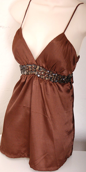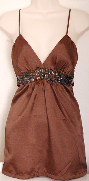 Xhilaration striped halter top. I don't think I ever wore it. Could be from previous rehash. I see tiny holes but really not noticeable. Other than tiny holes, it's in excellent condition.