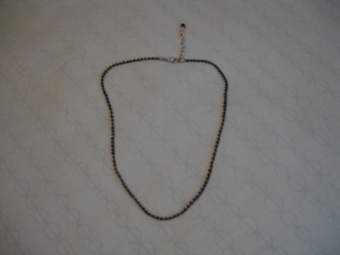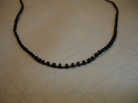 These are tiny little black beads braided onto a 16 inch string with clasp. Simple and cute.