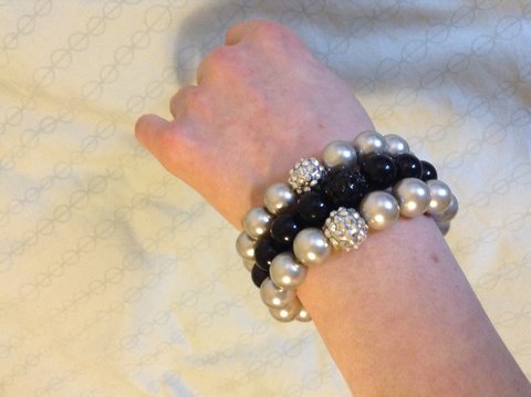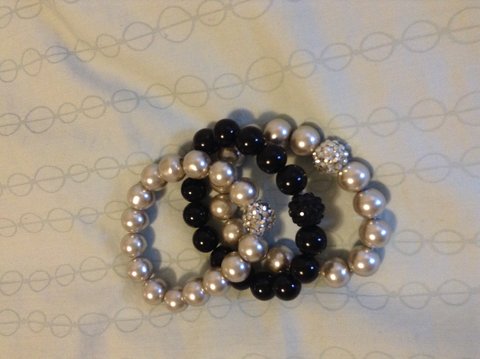 Easy, glam bracelets in pearly grey, edgy black and just enough sparkle. Nice weight to them. No scratches or missing sparkles.