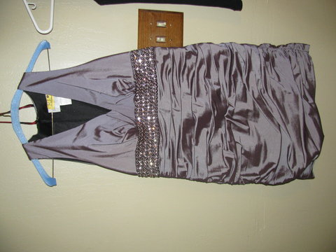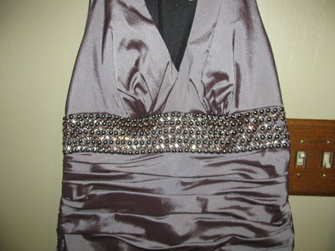 I purchased this dress at Davids Bridal for my Brothers wedding. I have worn this dress once and since then it has been dry cleaned. It is in excellent shape!