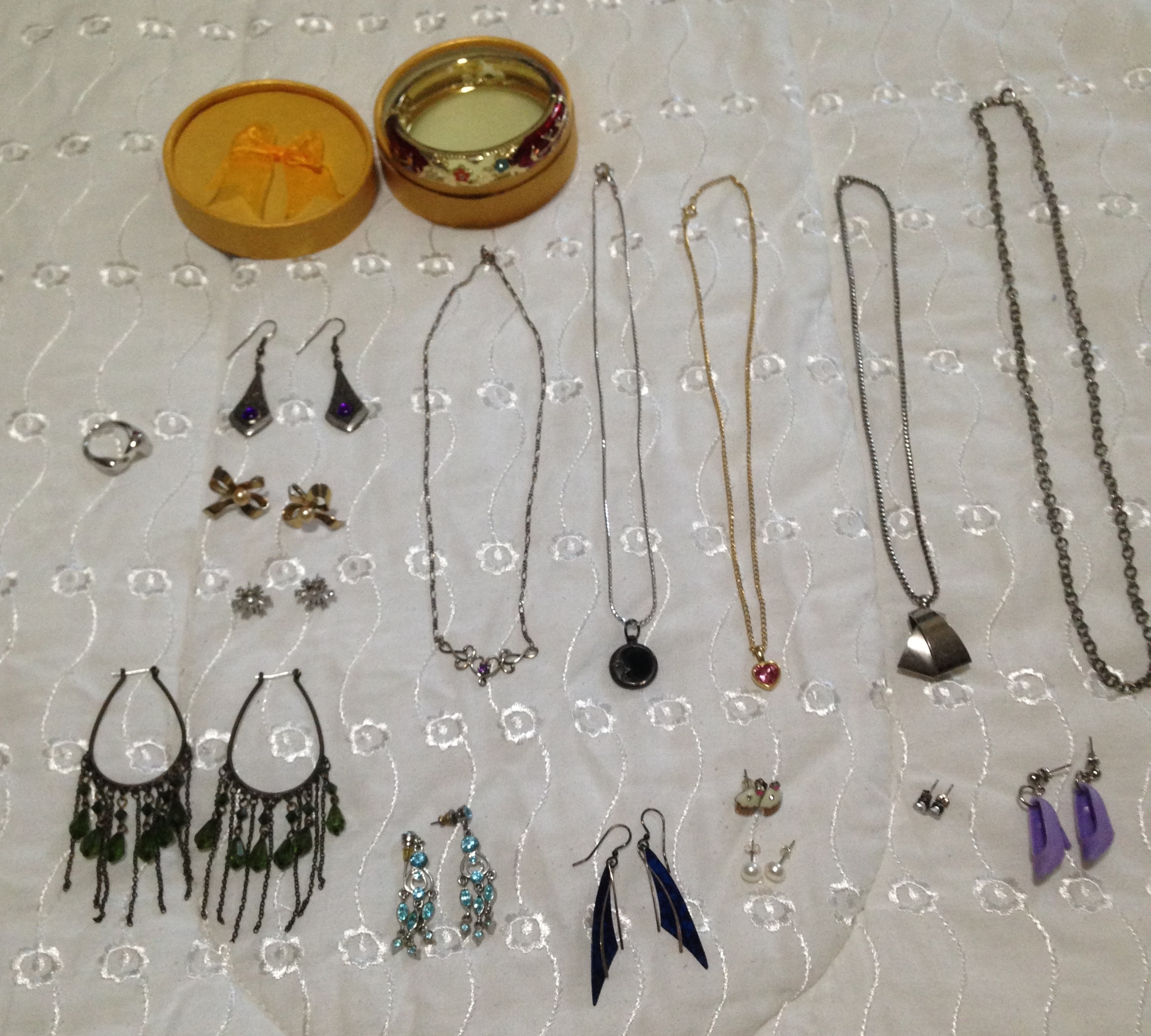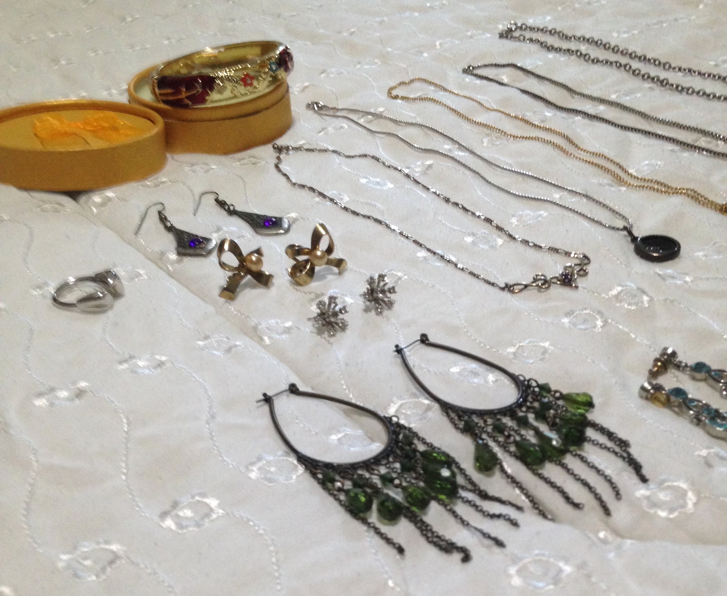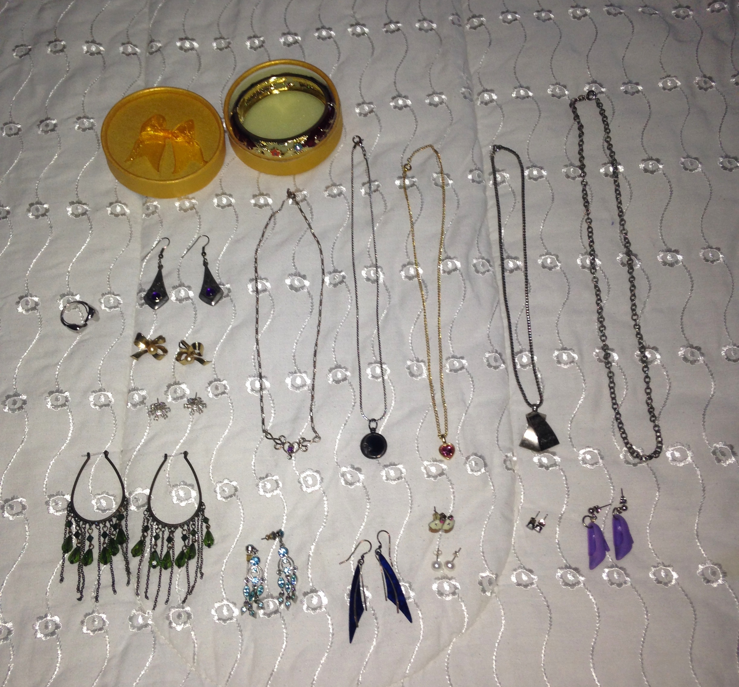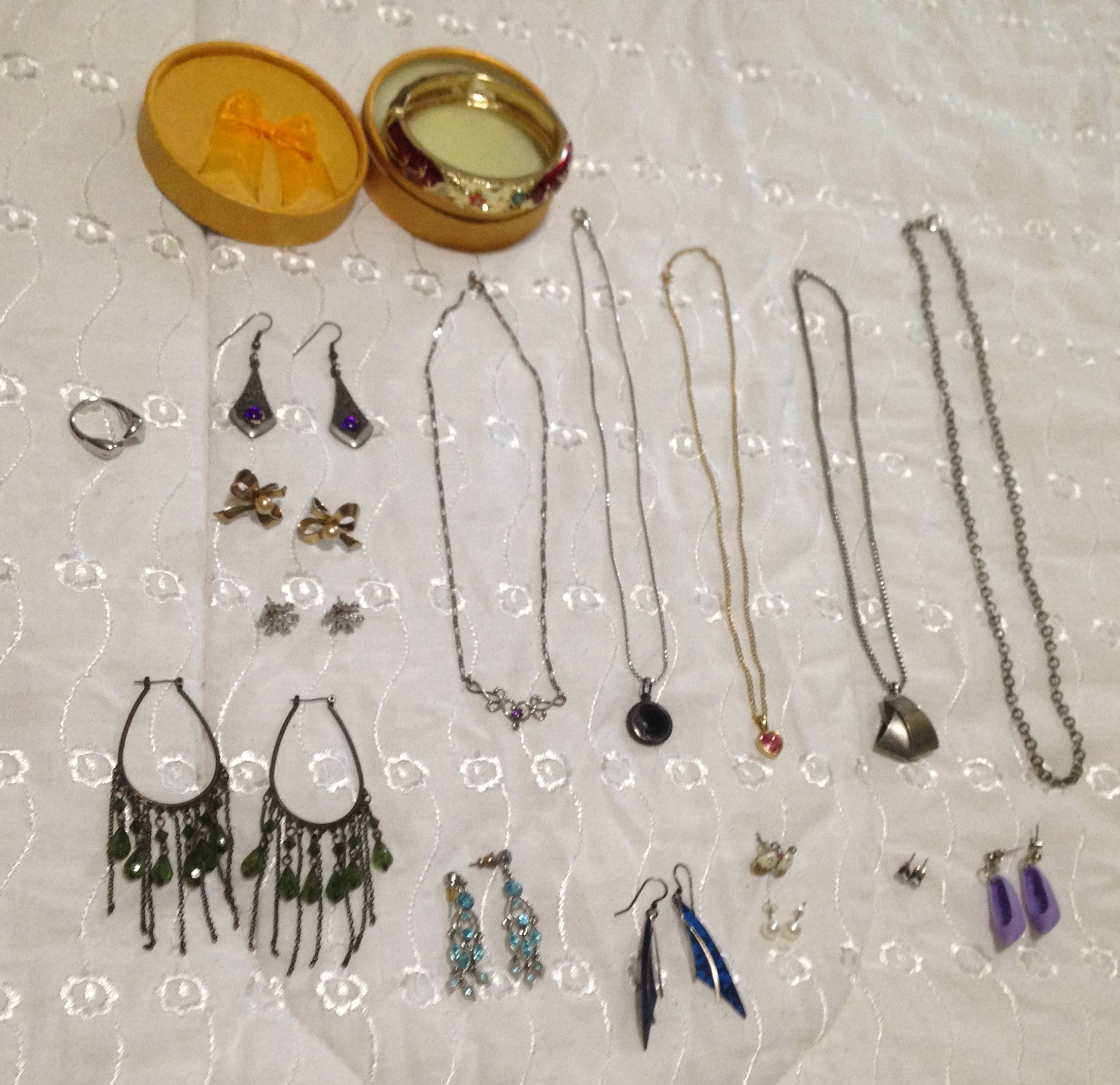 Please click through all the photos so that you can see everything that is included. Everything in the photos is included except for the red bracelet. Some pieces are brand new, some are vintage, and some are gently used. If you have any questions about something specific please send me a message or comment.