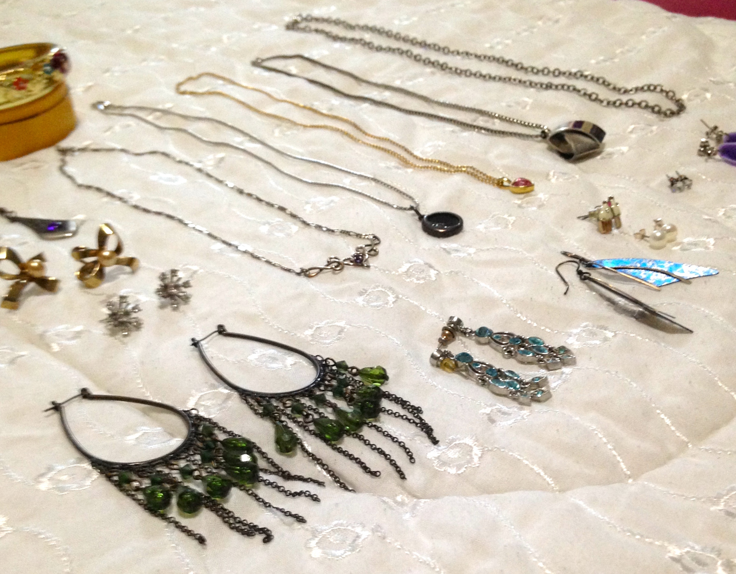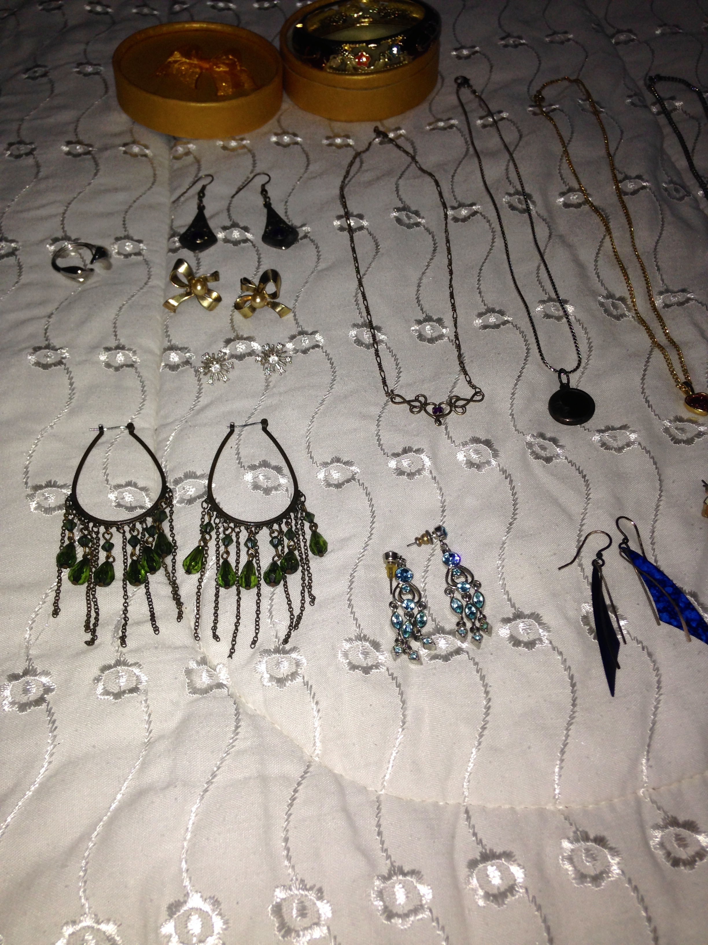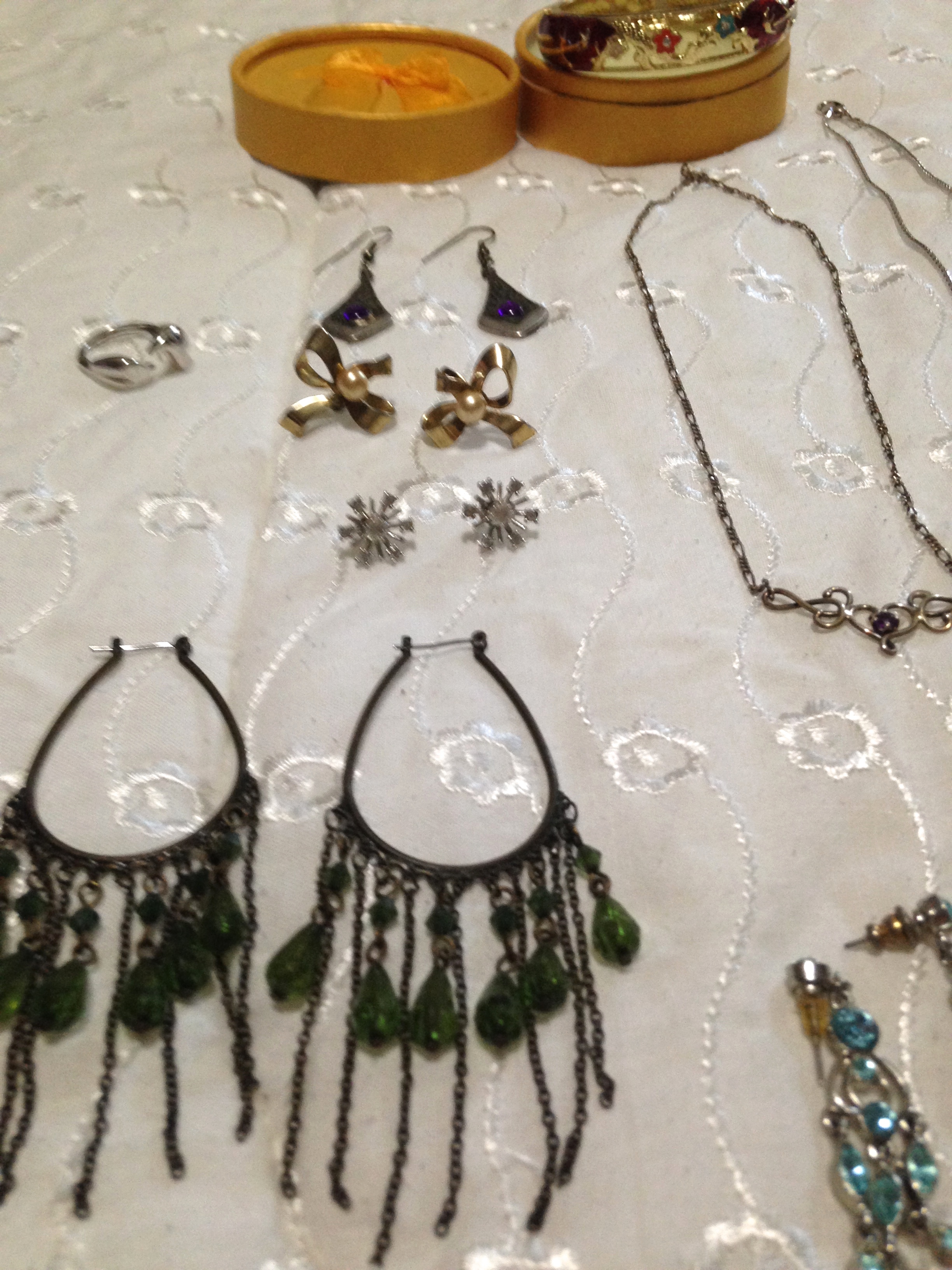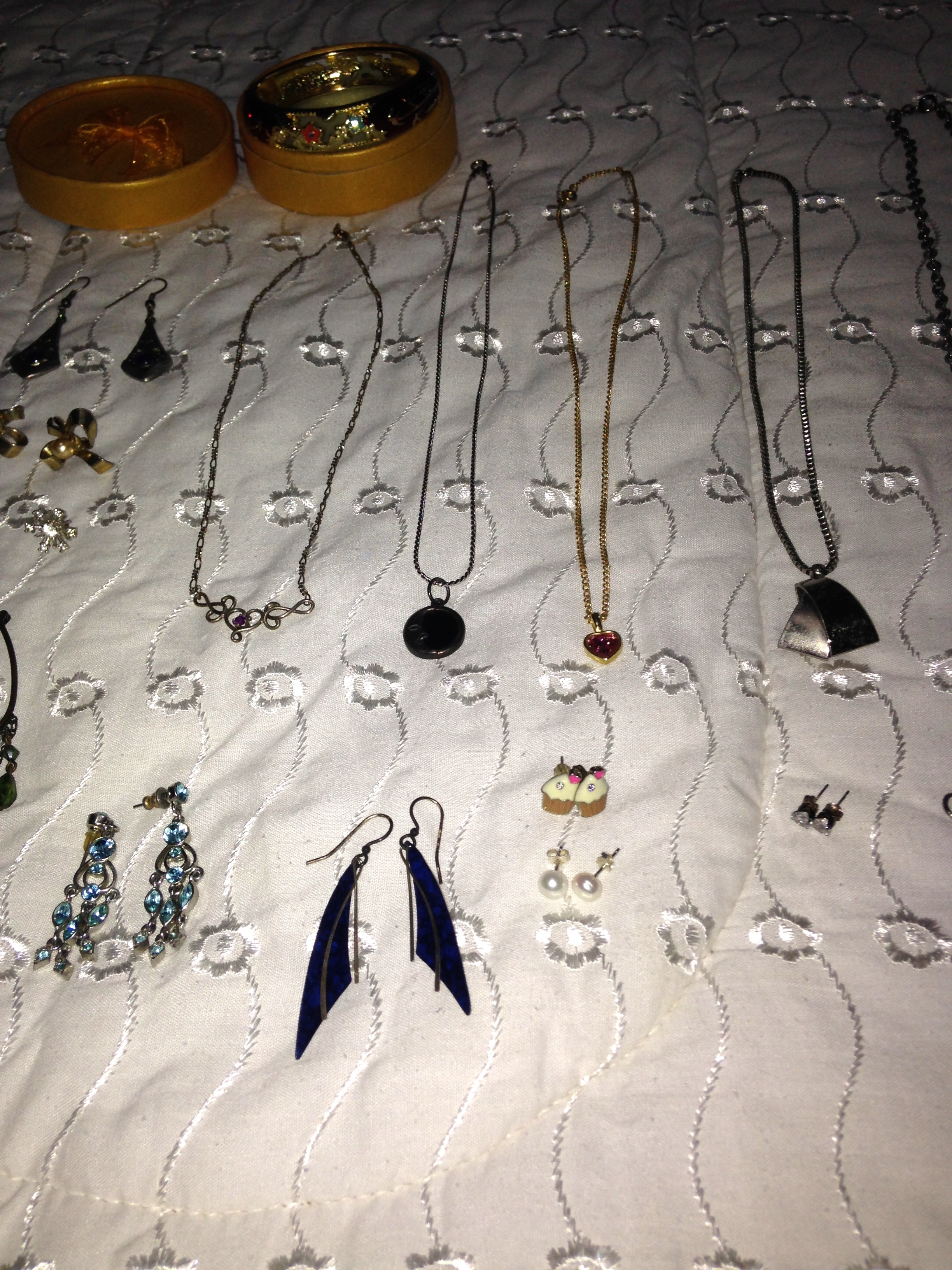 Please click through all the photos so that you can see everything that is included. Everything in the photos is included except for the red bracelet. Some pieces are brand new, some are vintage, and some are gently used. If you have any questions about something specific please send me a message or comment.