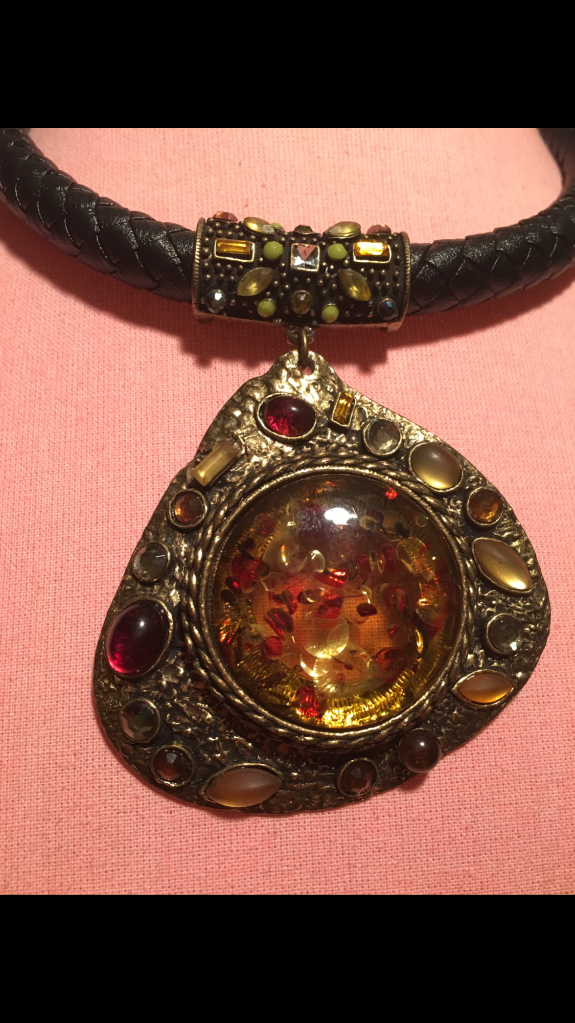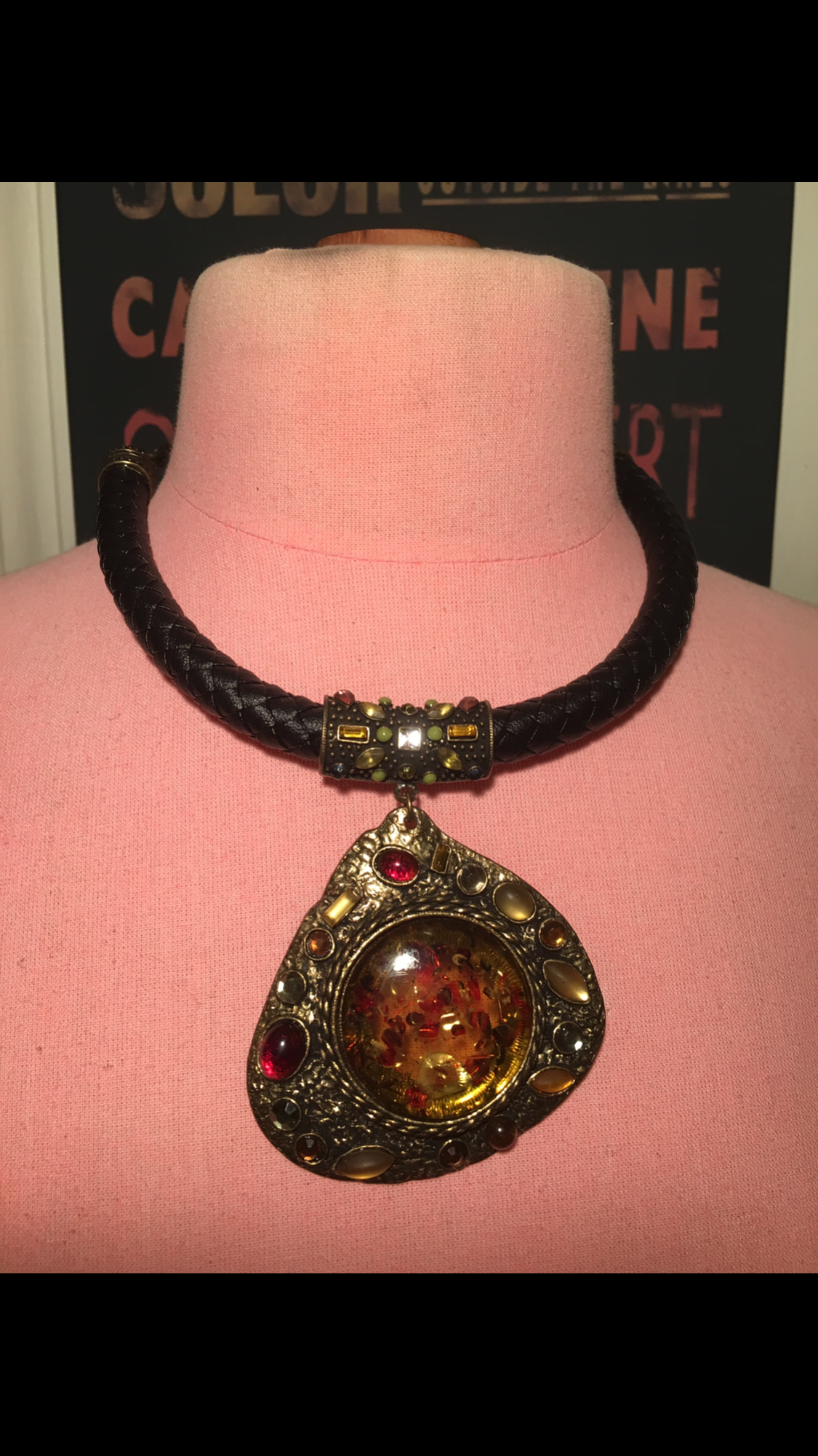 Gorgeous citrine stone Chunky necklace w/black braided leather chain!