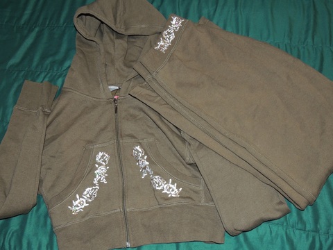 These were a gift. Dark green sweatsuit. Brand new. Size large.