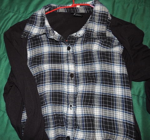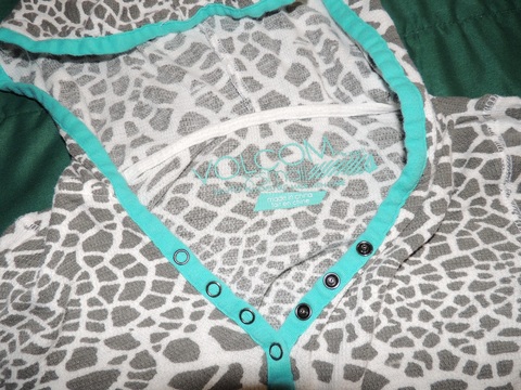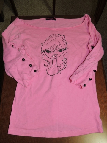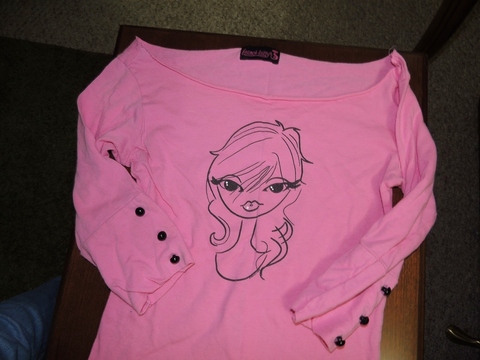 Very cute. Buttons on the sleeves. Off the shoulder shirt.