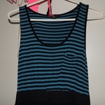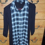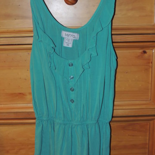 Cute blue dress. There isn't a tag, but I think it's a medium. Very flowy.
