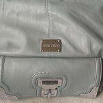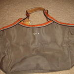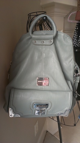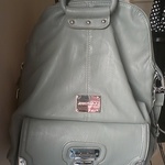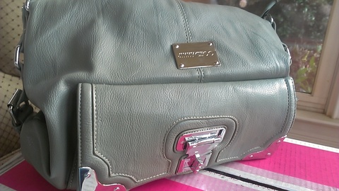This bag is so big and versatile. It can be carried as a shoulder bag, by the handles full length, or folded over and used as a large cross body. The grey/blue color goes with just about anything. Lot's of interior space, a separate interior zipper area, and outside pockets on front and back. Just an amazing purse all around, and so unusual! Comes from smoking home, cleaned and febreezed before mailing.