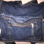 Adjustable strap. Double buckle closure. Features: large zip pocket on flap, cell phone pocket, and tons MORE pockets for storing your stuff. Lightweight denim.