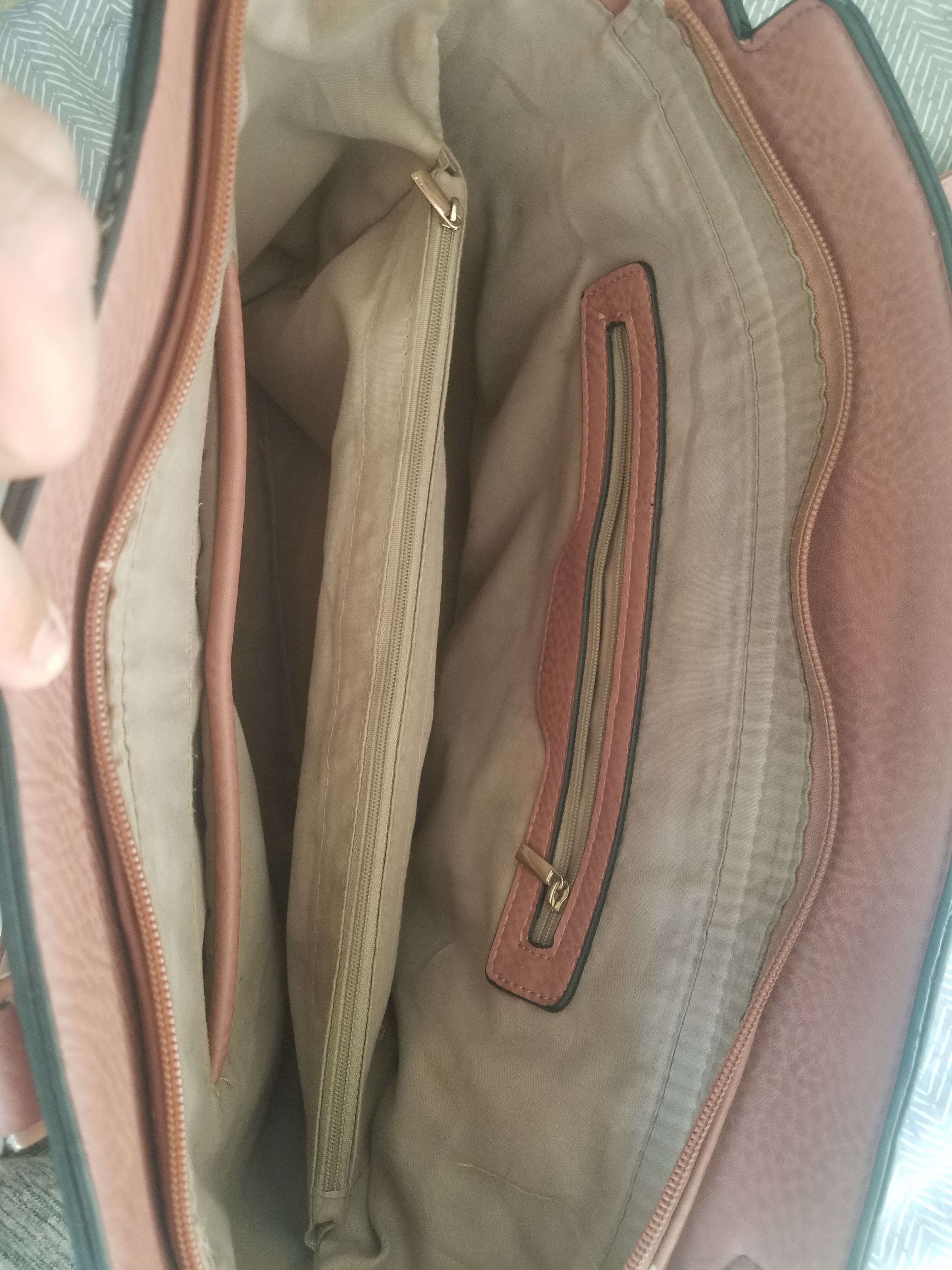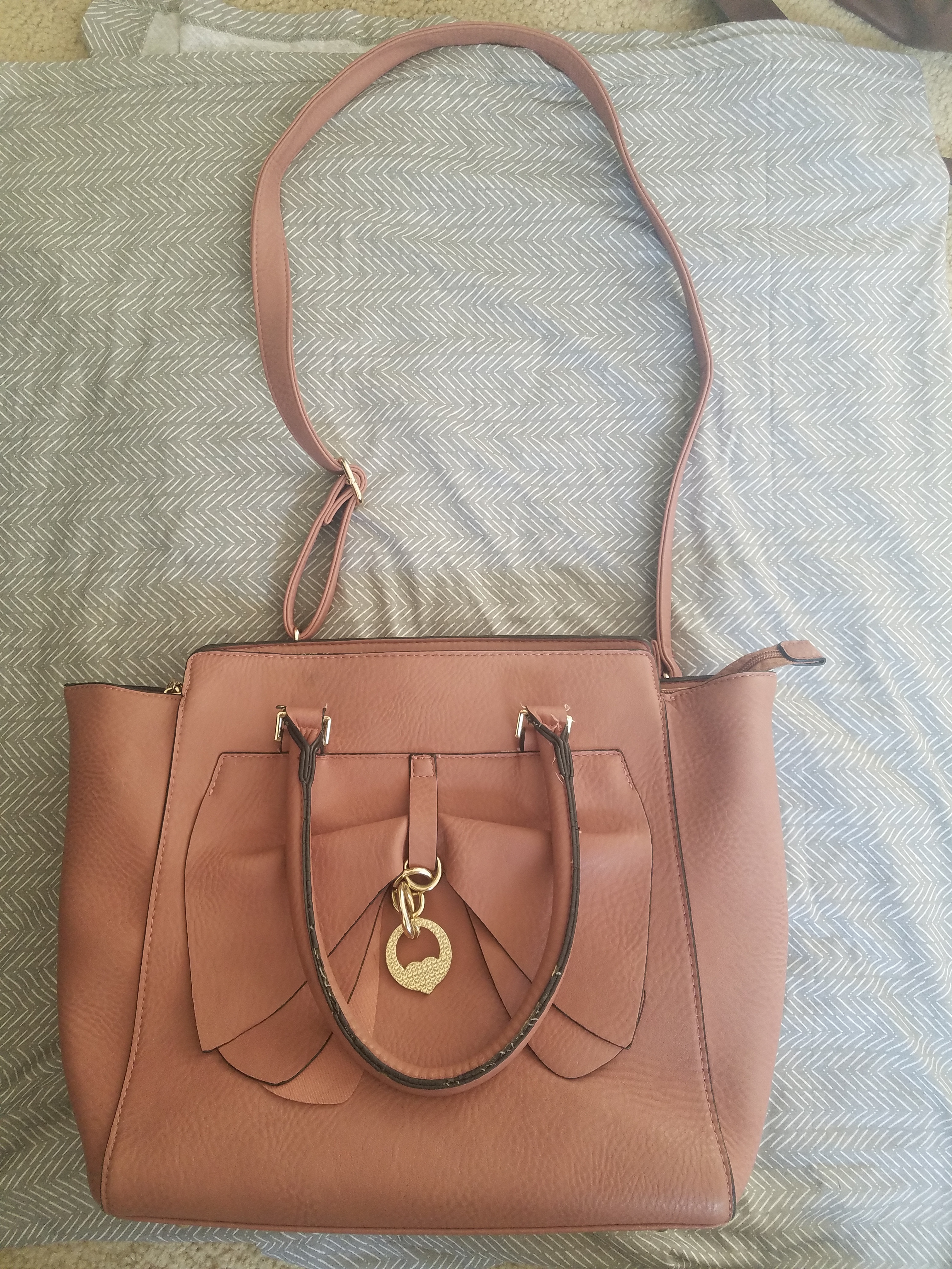 Beautiful blush pink color. Comes with a.long strap. Has a zipper compartment in the middle .