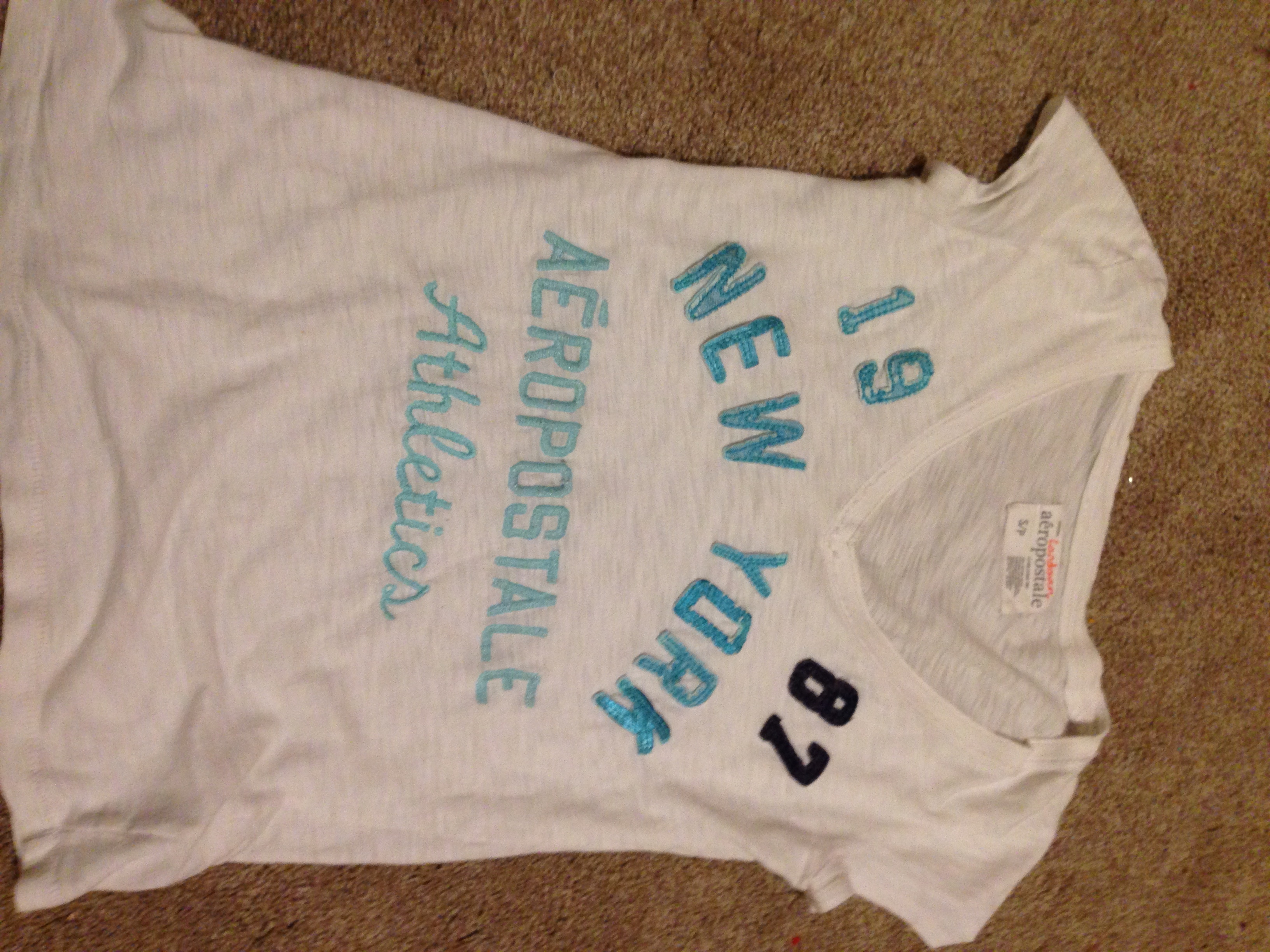White Aeropostale tee shirt with blue lettering size S/p but fits like a medium