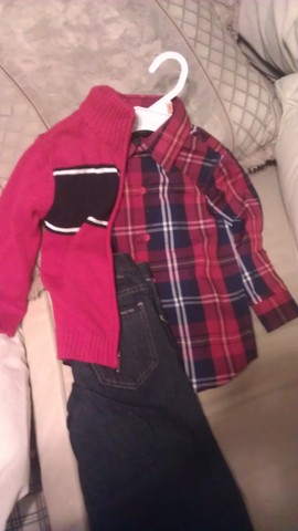 nwt jeans button up and sweater so adorable got the wrong size n lost receipt sorry i will be picky it is a nice out fit