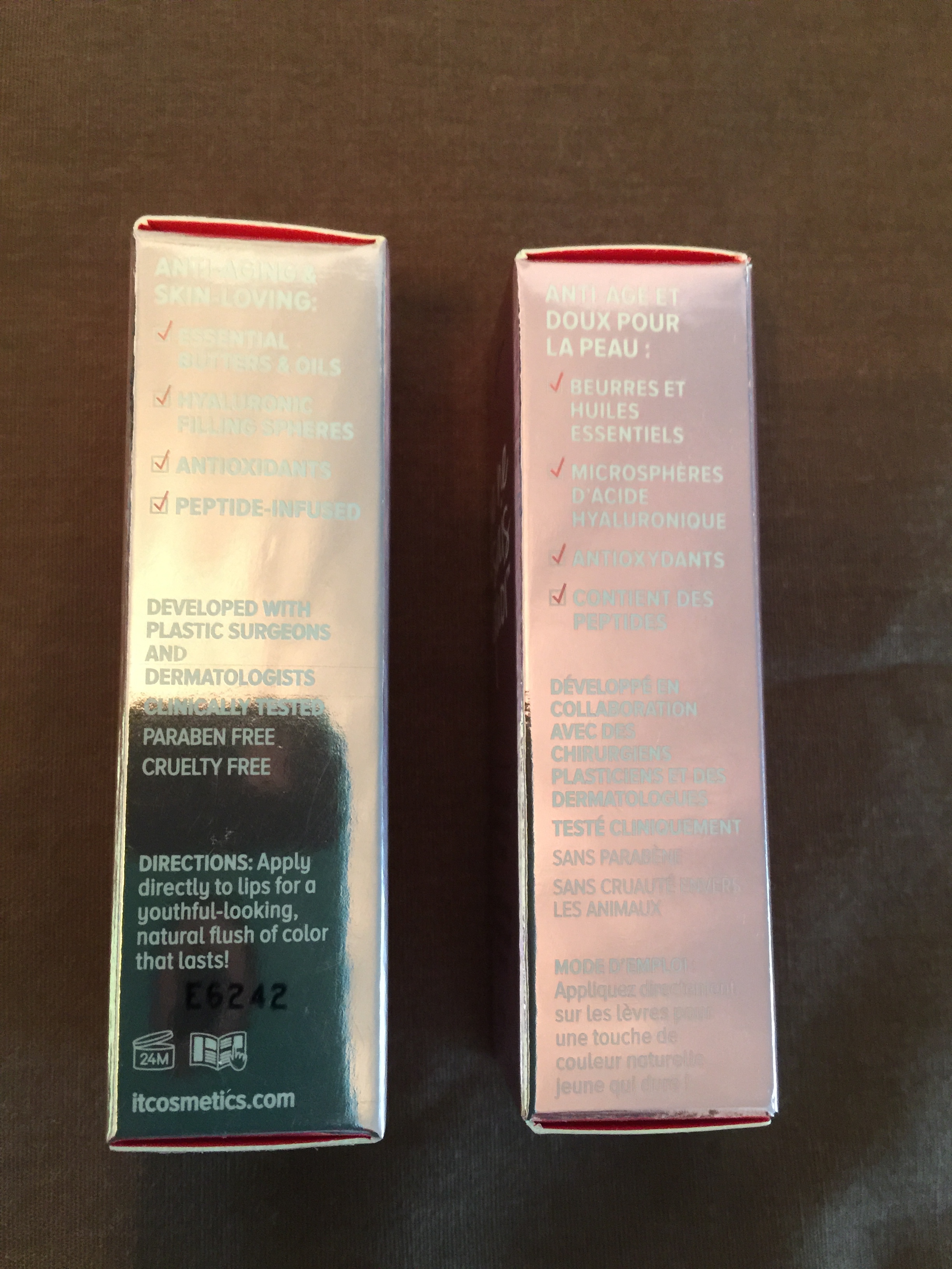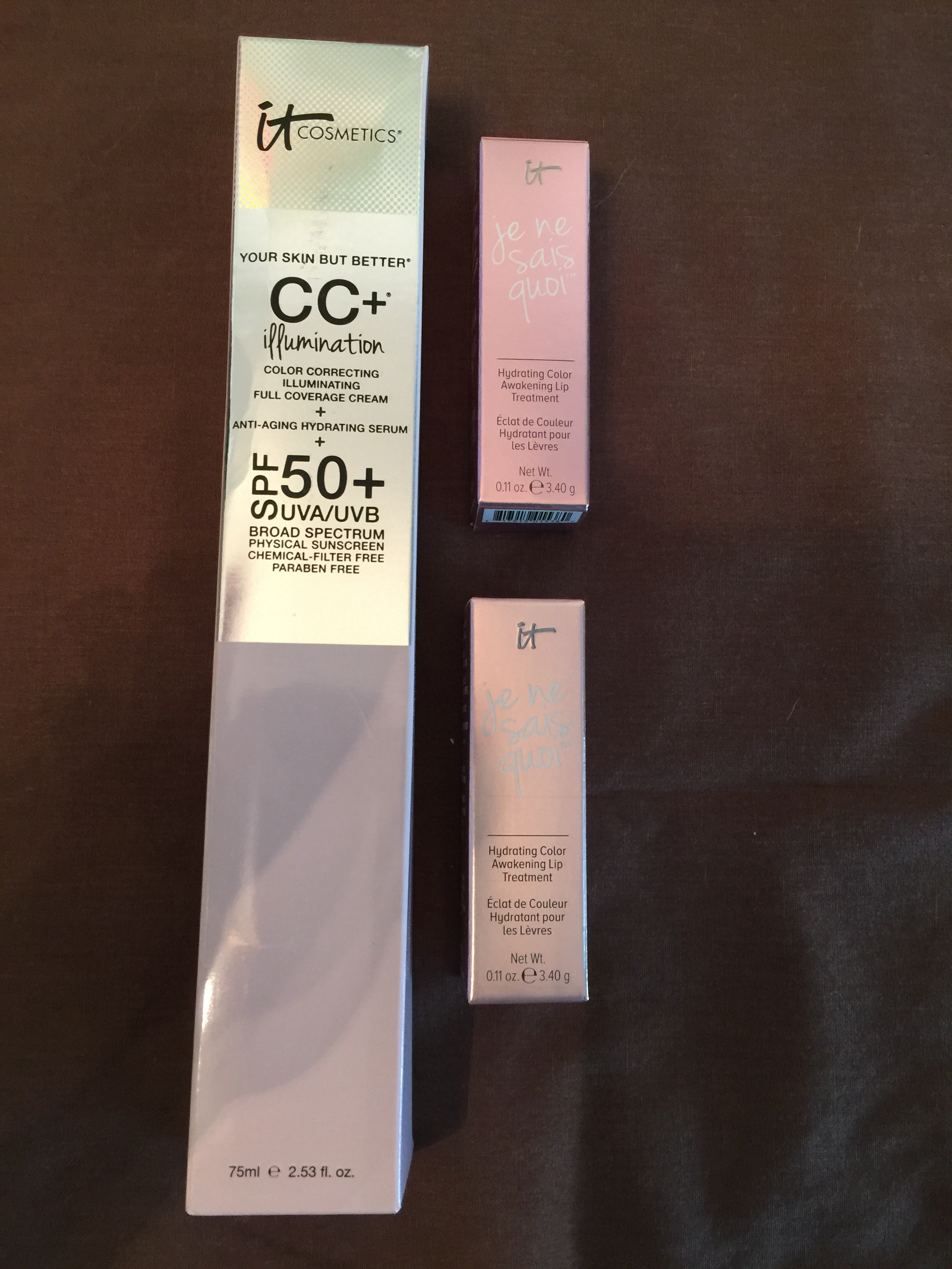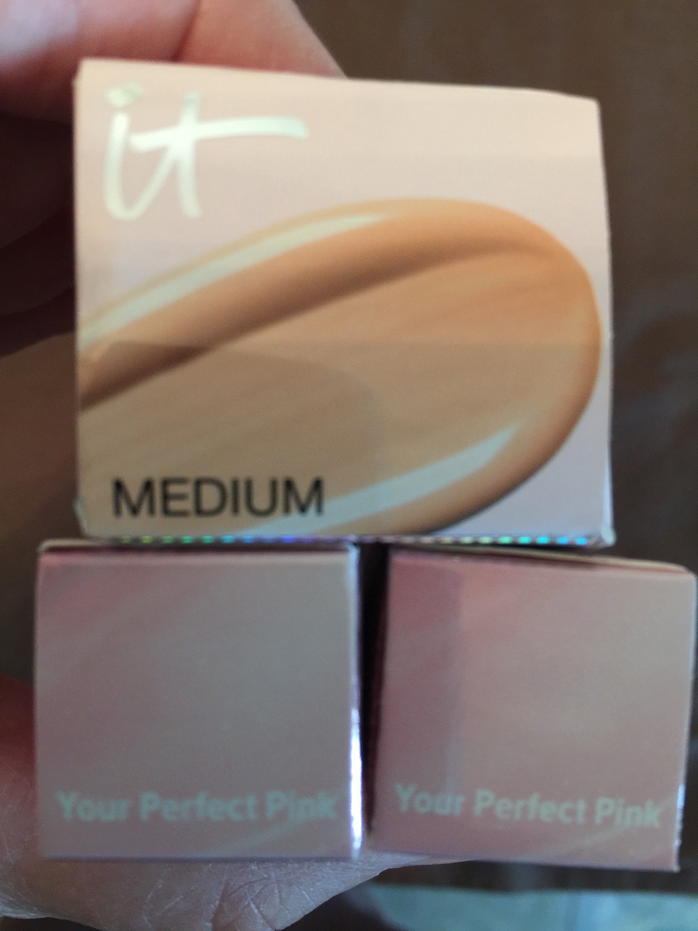 IT is an upscale make up company specializing in coverage of blemishes, red spots or flaws on the face. The company also has a lip treatment offered in a lipstick tube that hydrates and moisturizes even the most chapped lips. The color is just a slight tinge of pale pink. Offered is 1, 2.53 fluid ounce tube of medium coverage cream foundation with a SPF of 50+ and 2, O.11 ounce tubes of lip treatment. Only a small amount of foundation is required to cover the face, therefore the product will last longer than regular drug store make up. I have used my lip treatment twice a day for 3 months and still have plenty in the tube.