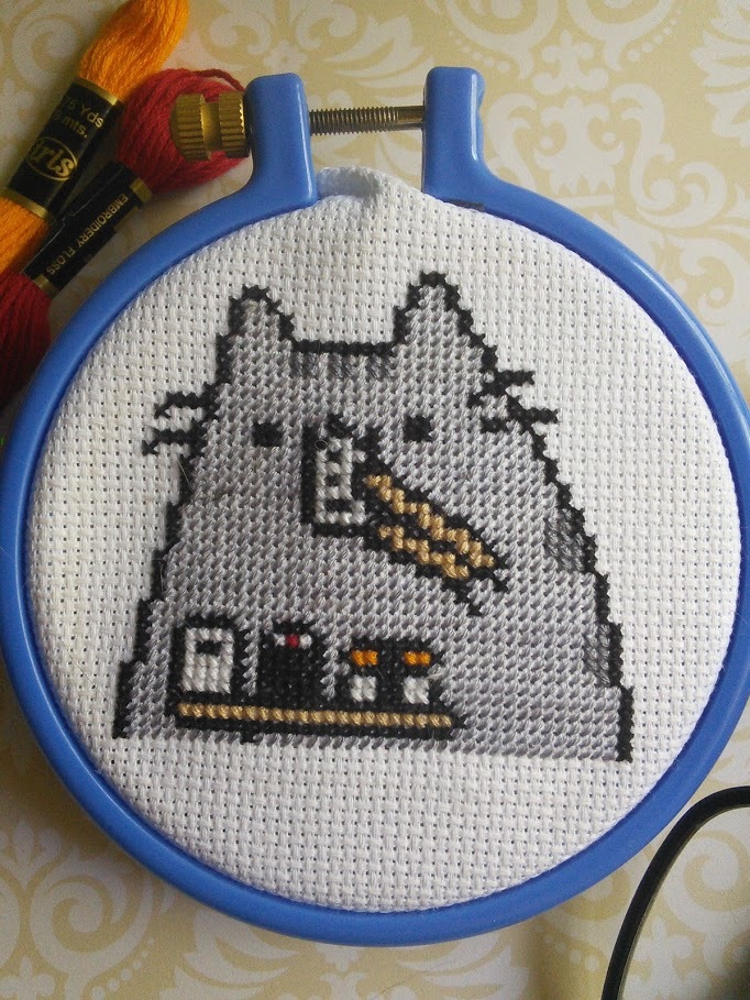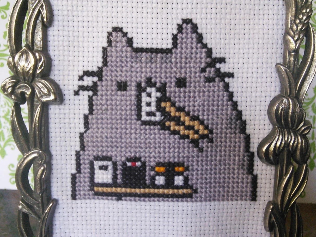 Handstitched Pusheen eating Sushi. Great for cat lovers!