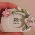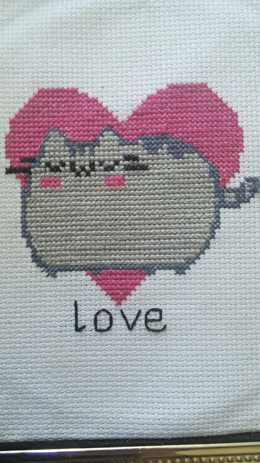 Pusheen the cat with "love" written underneath. Comes in a beautiful silvertone frame.