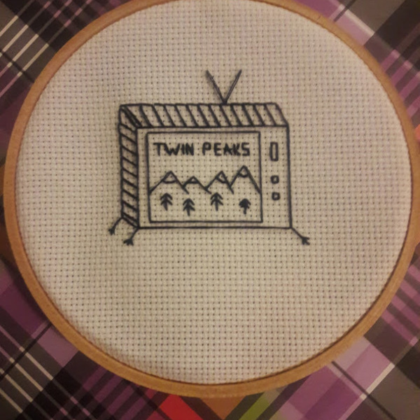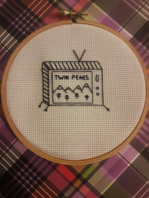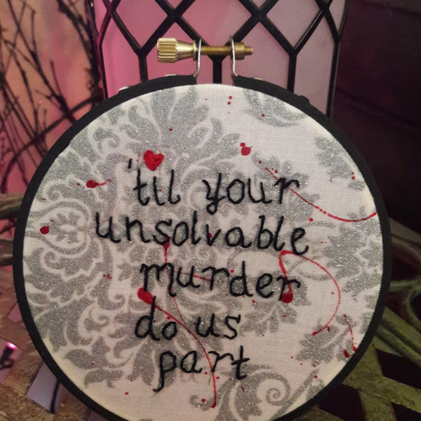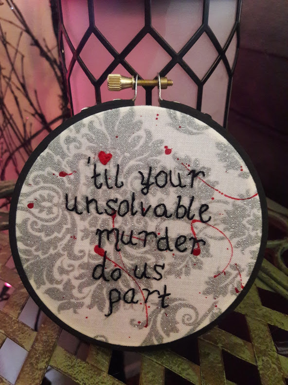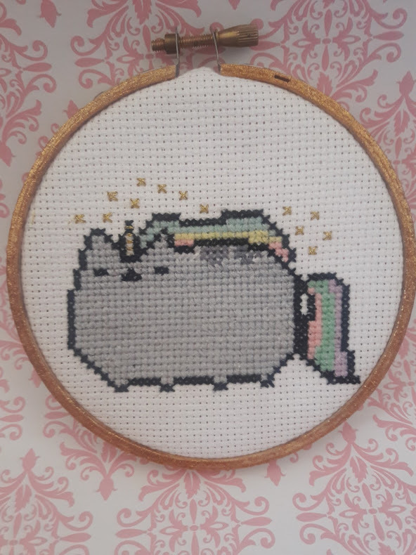Pusheen Unicorn Cross stitch in gold glitter hoop