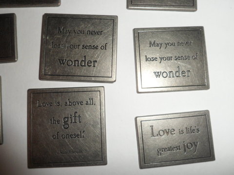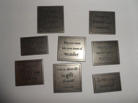NEW IN PACKAGING. Set of TWO metal charms each with an inspirational quote. Can be used to make a necklace, bracelet, anklet, keychain, etc. Make something for yourself or give as a crafty gift.