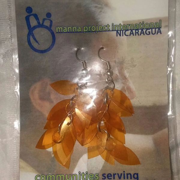 Upcycle earrings plastic gold color Recycled materials, handmade New!