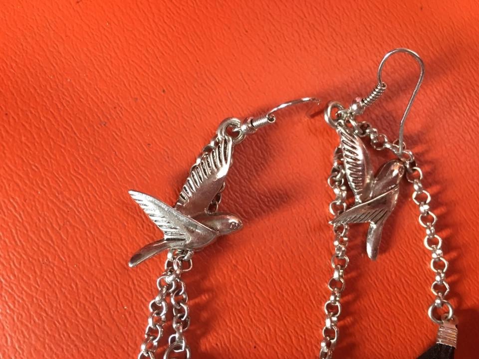 Boho jewelry!! Feather and bird designs- round pair w/stones is Sterling!