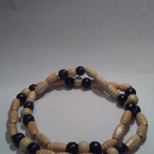 LIGHT COLORED WOODEN BEADED NECKLACE.