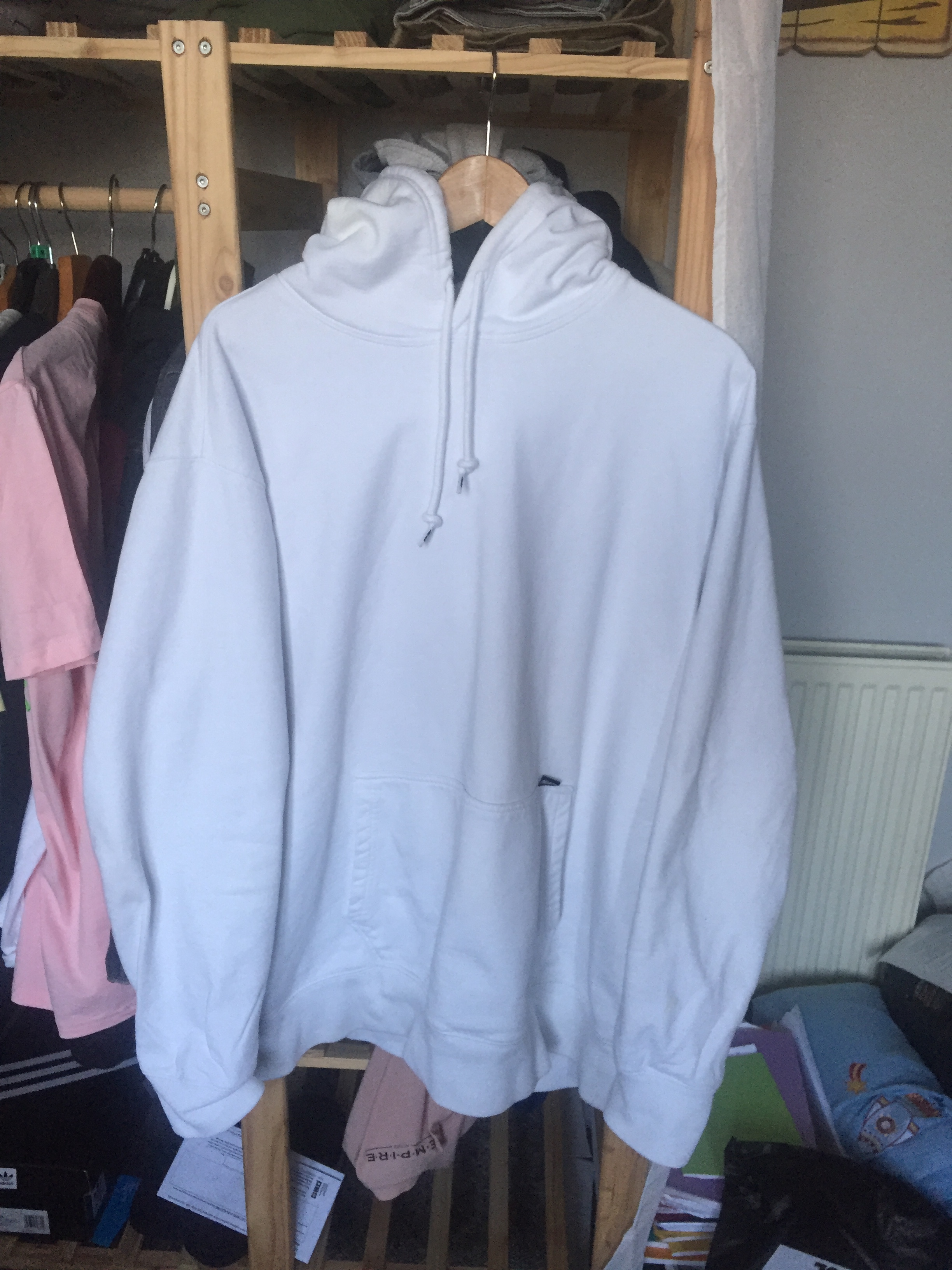 Small size men's blue and white interwoven hoodie. Surfer vibes included. Perfect for cosying up and chilling in. I love the zip down the front that is perfect for temperature control. The hood is a nice length, can be tightened to cover your face like Kenny. It's a 85:15 blend of Acryllic and wool respectively but is so soft and very much nice to touch. Woven like a woolen hoodie but with a fluffy interior lining of the body and a smooth woven nylon sleeves. Also two nicely placed pockets on the front of the hoodie for keeping hands warm. Got it as a joint birthday and christmas present from my mum and step dad when I was 16, I'm 24 now. It's served me well and apart from having to rethread a couple of bits on sleeves and stuff it's help up well against time. It's quite bulky when trying to fit into bags, you will have to wear it when travelling to take it elsewhere on a plane or the like. Doesn't keep wind out very well, combos up with a thin waterproof to provide best of both worlds for outdoors.