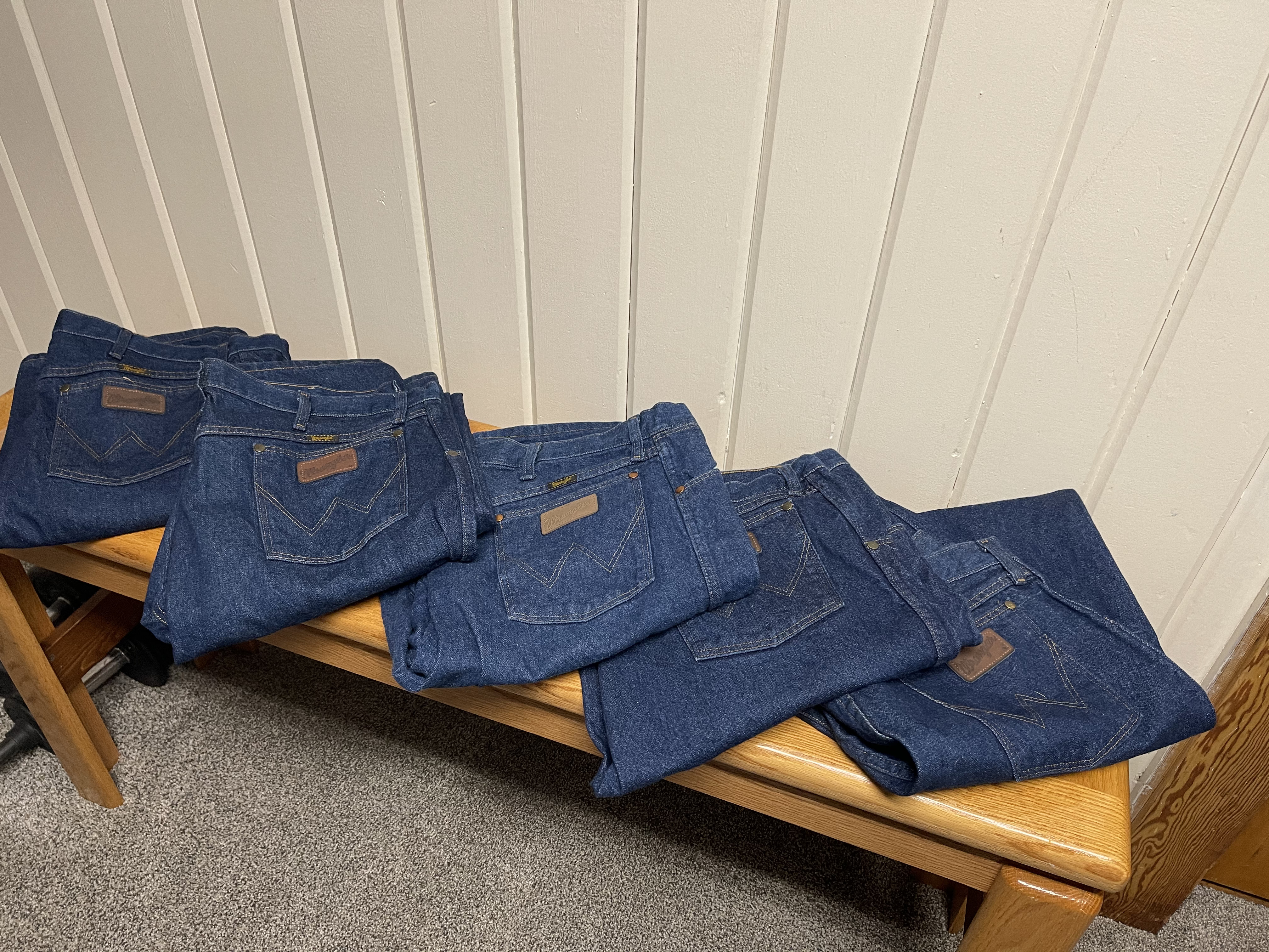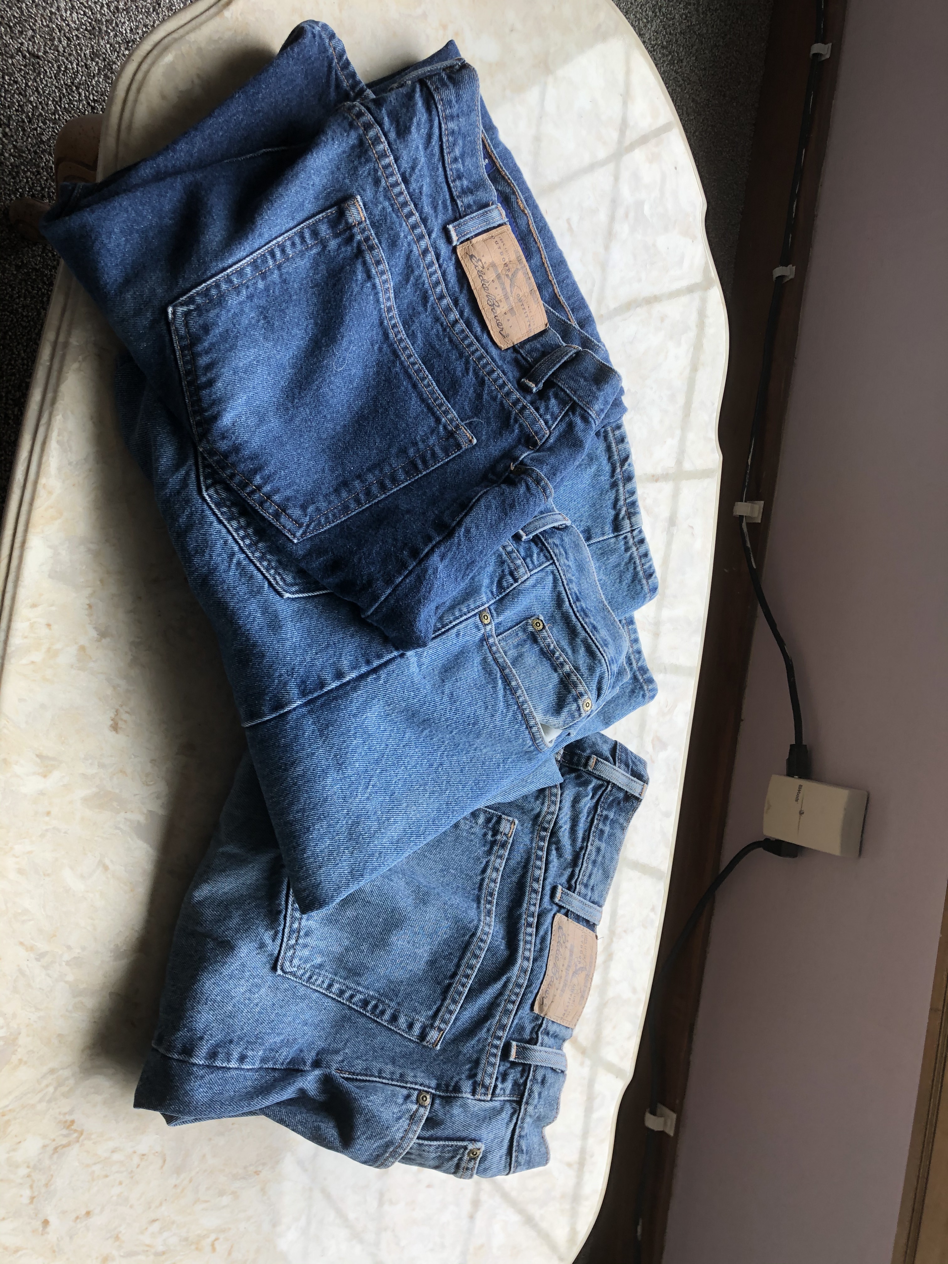 Wrangler jeans for sale. 40 waist by 36 length. Dark blue. Three relaxed fit, one regular fit? Most have never been worn. $20 each or best offer.