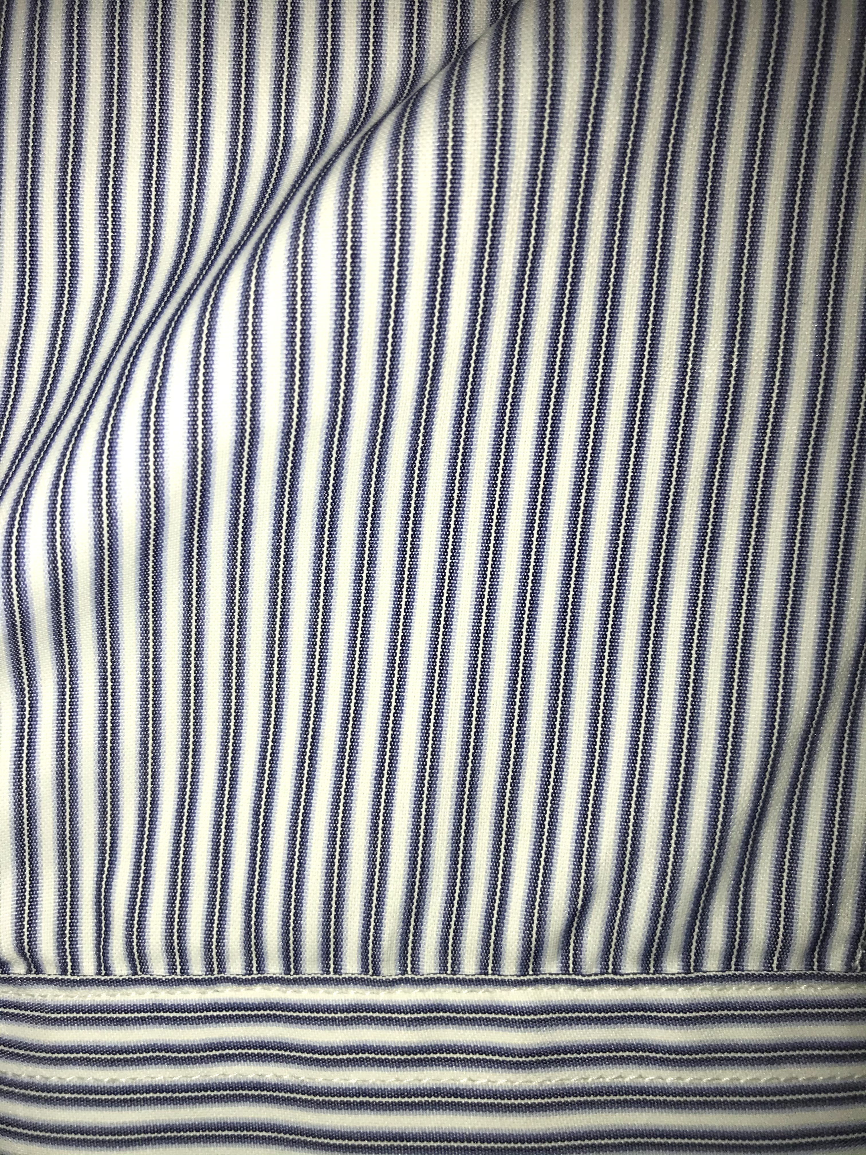 I have one navy, one red/white plaid, white, brown plaid and baby blue/white stripped. All are in great condition, just big on me now.