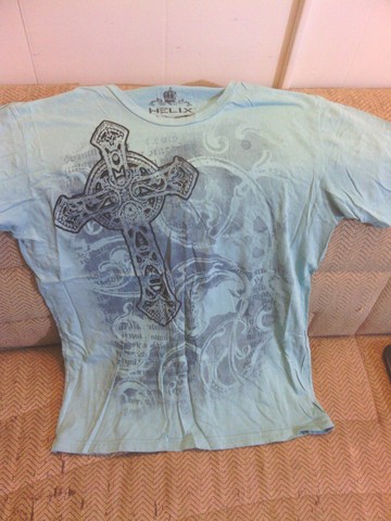 Only marked good because of a small hole on sleeve. Brand: Helix ; Awesome shirt. I love this on him, but he's just looking for something "new".