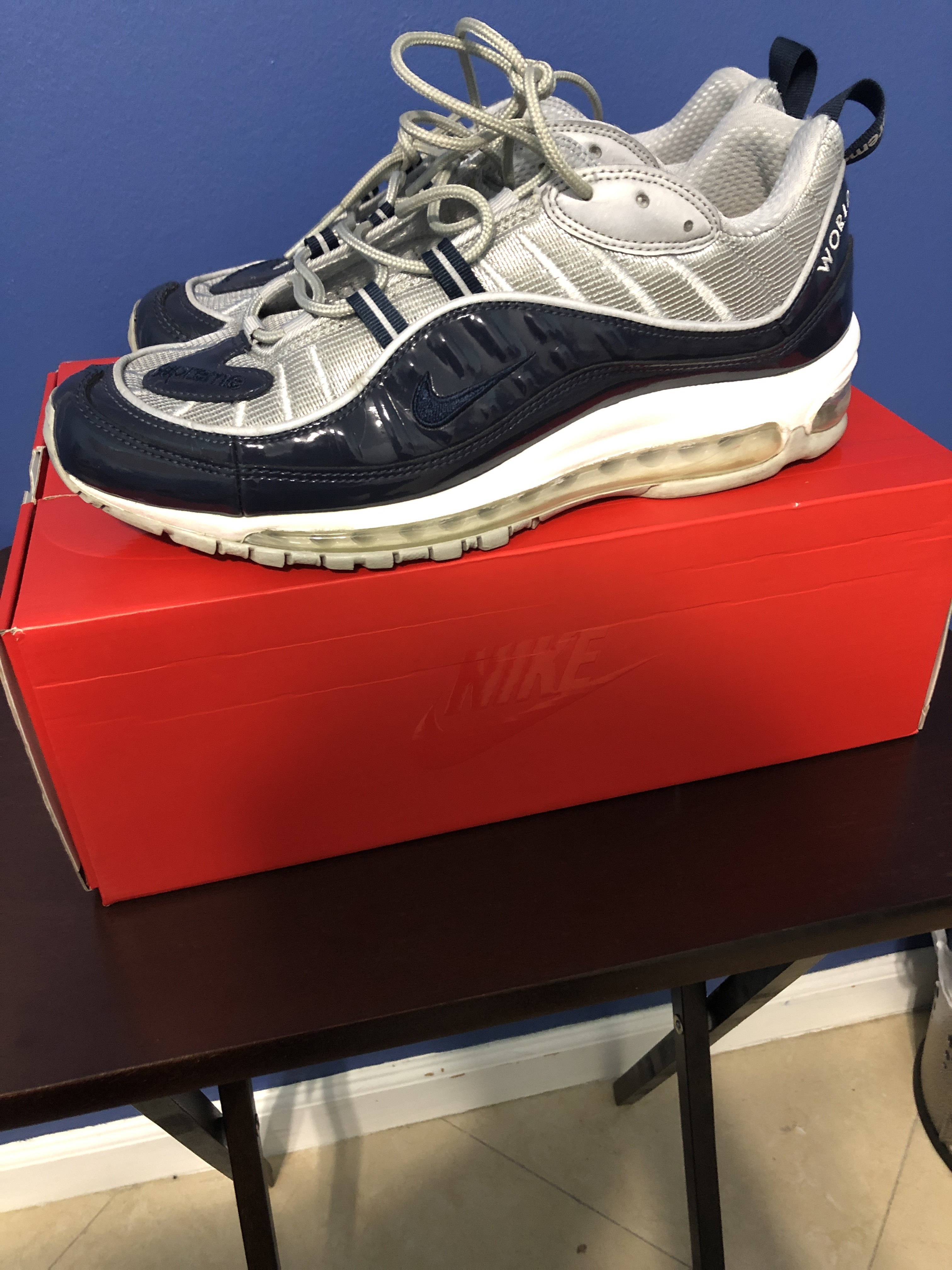 Nike Pegasus 32. Originally 120 dollars. Great shoes, barely worn (see inside of shoe). Men's size 8. The toe box is slightly narrow (for me, I have sasquatch feet). They are standard width so if you have a normal foot you'll be ok.