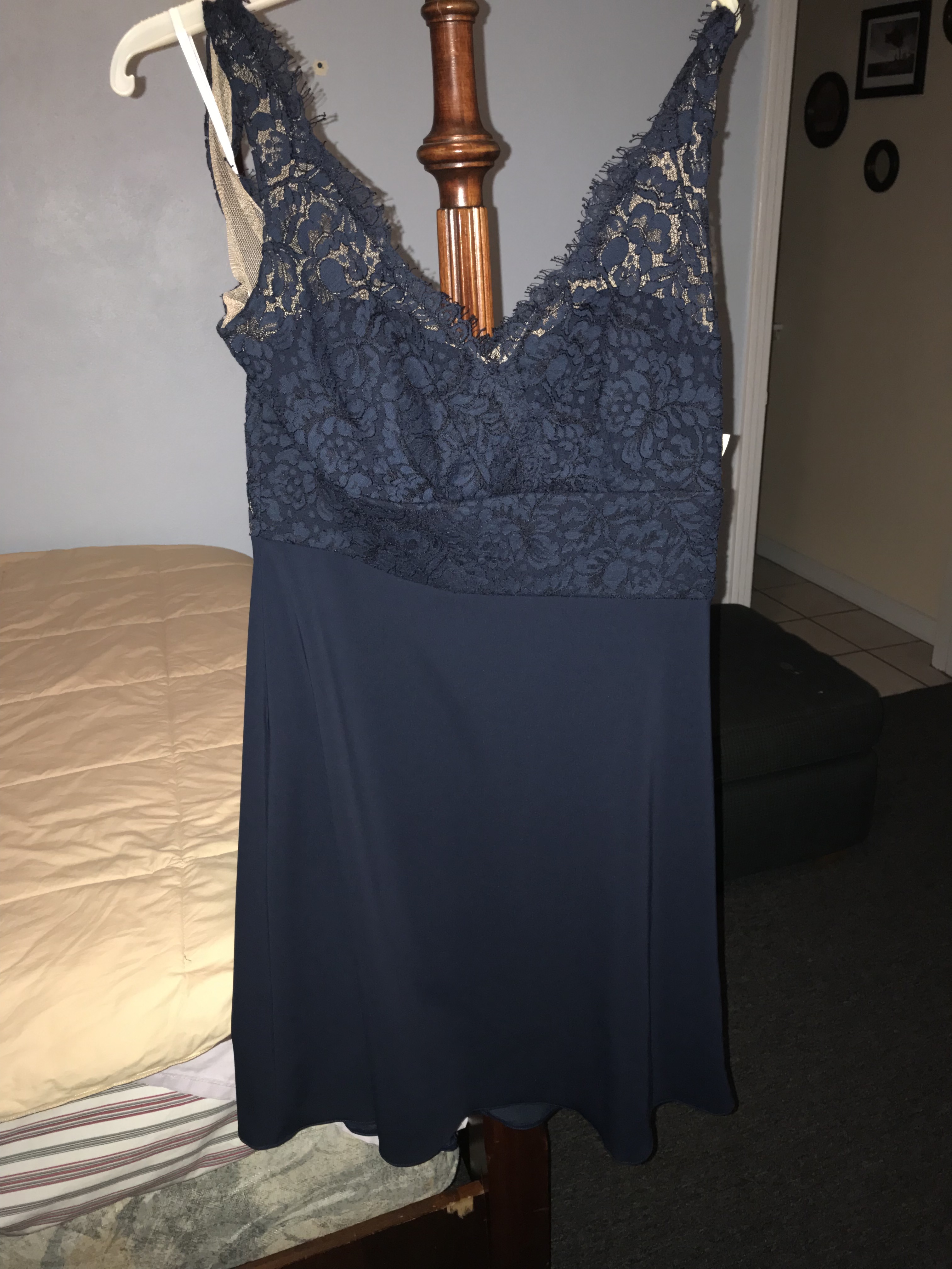 Runs small for a size 12. Never worn. Tags still on the dress.