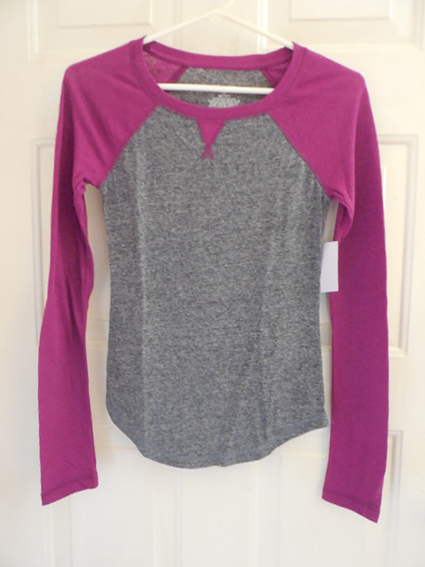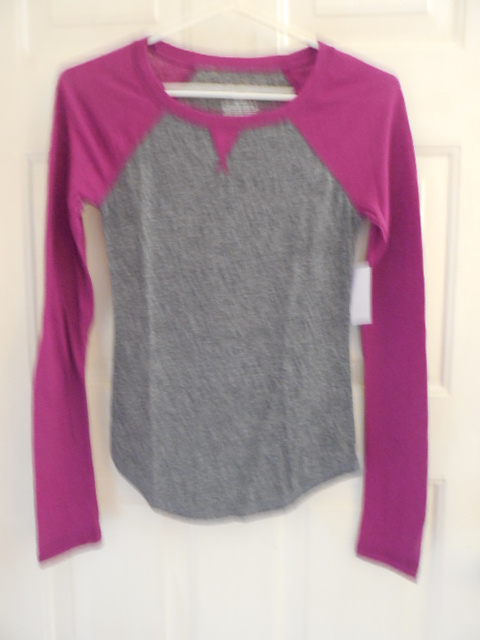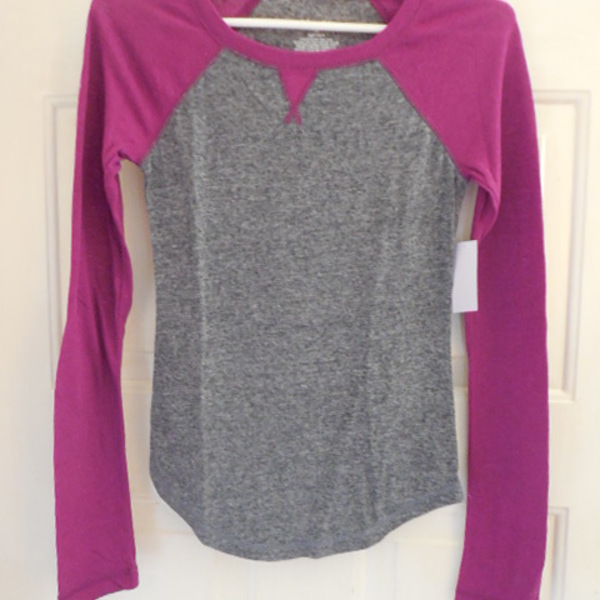 Xhilaration size XS. Sleepwear Tee-Shirt top, medium dark grey body with medium dark purple long sleeve, crew neck. New!