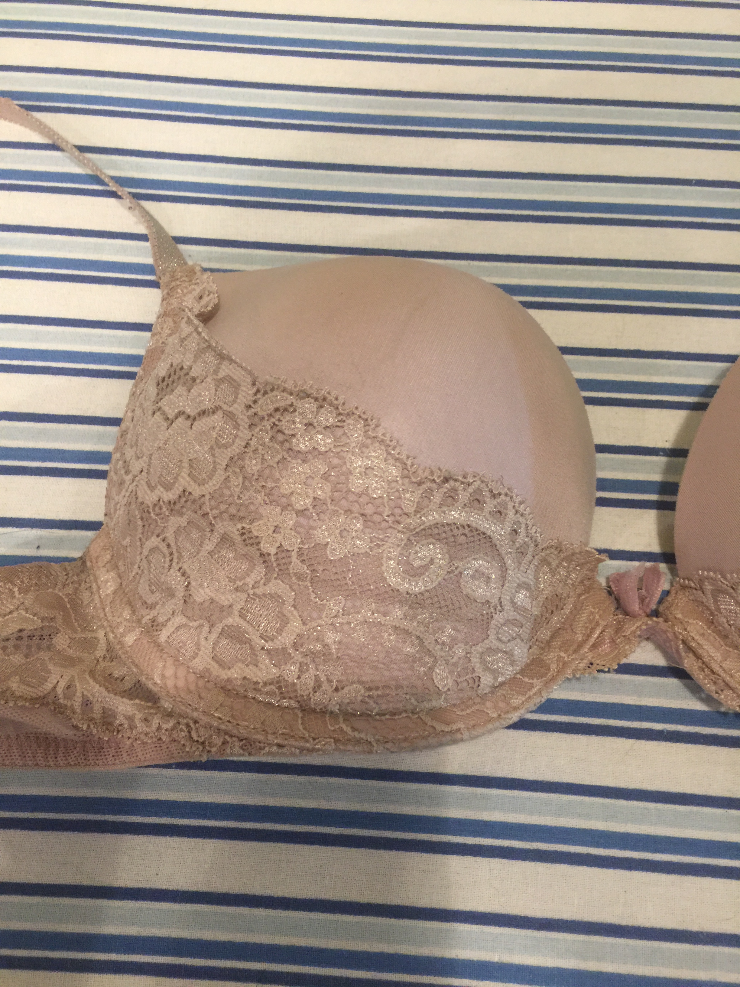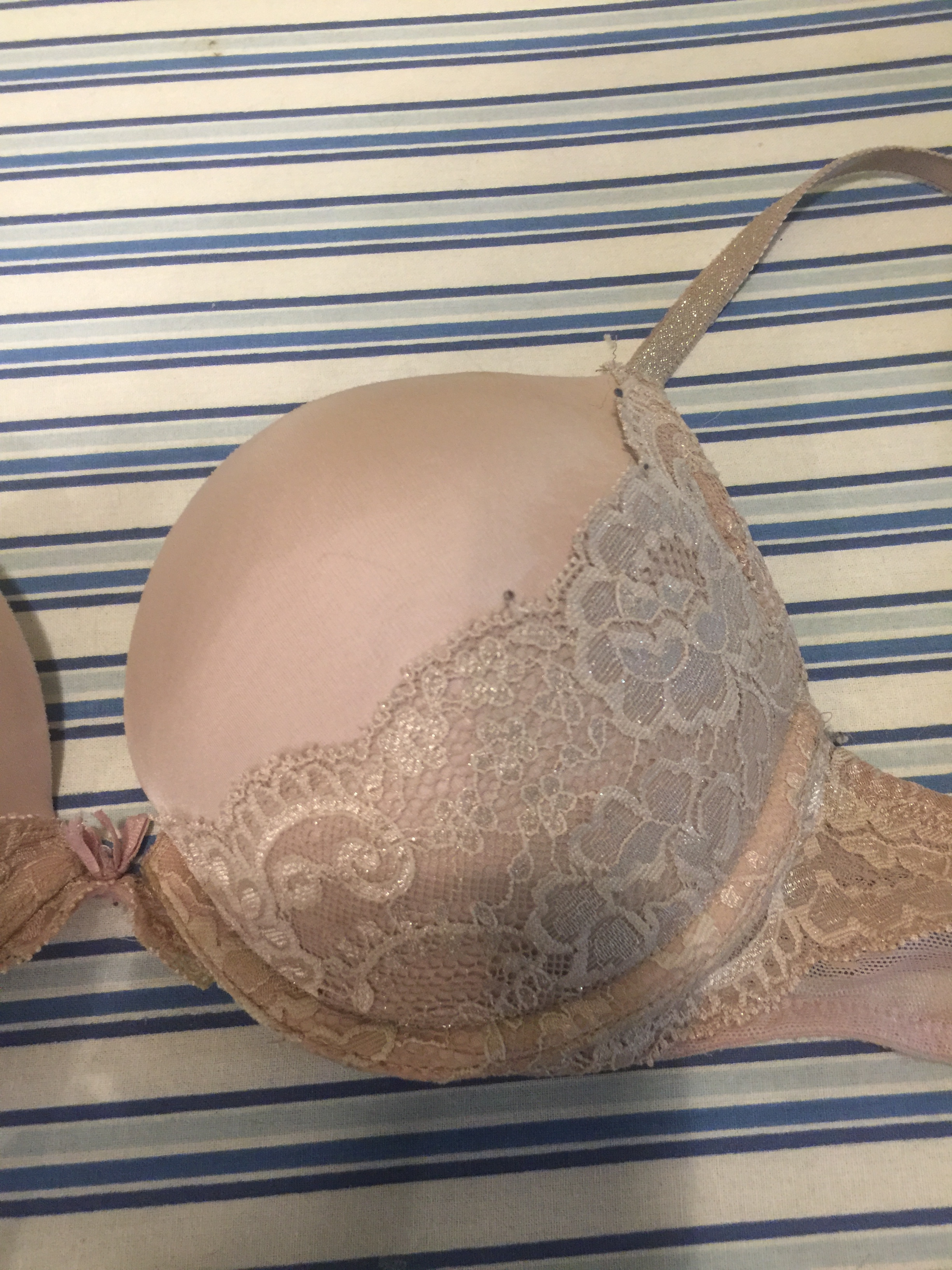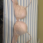 Victoria's Secret Dream Angels Plunge 32C. Haven't worn much, makes me boobs look too big. Light pink color with champagne like lace