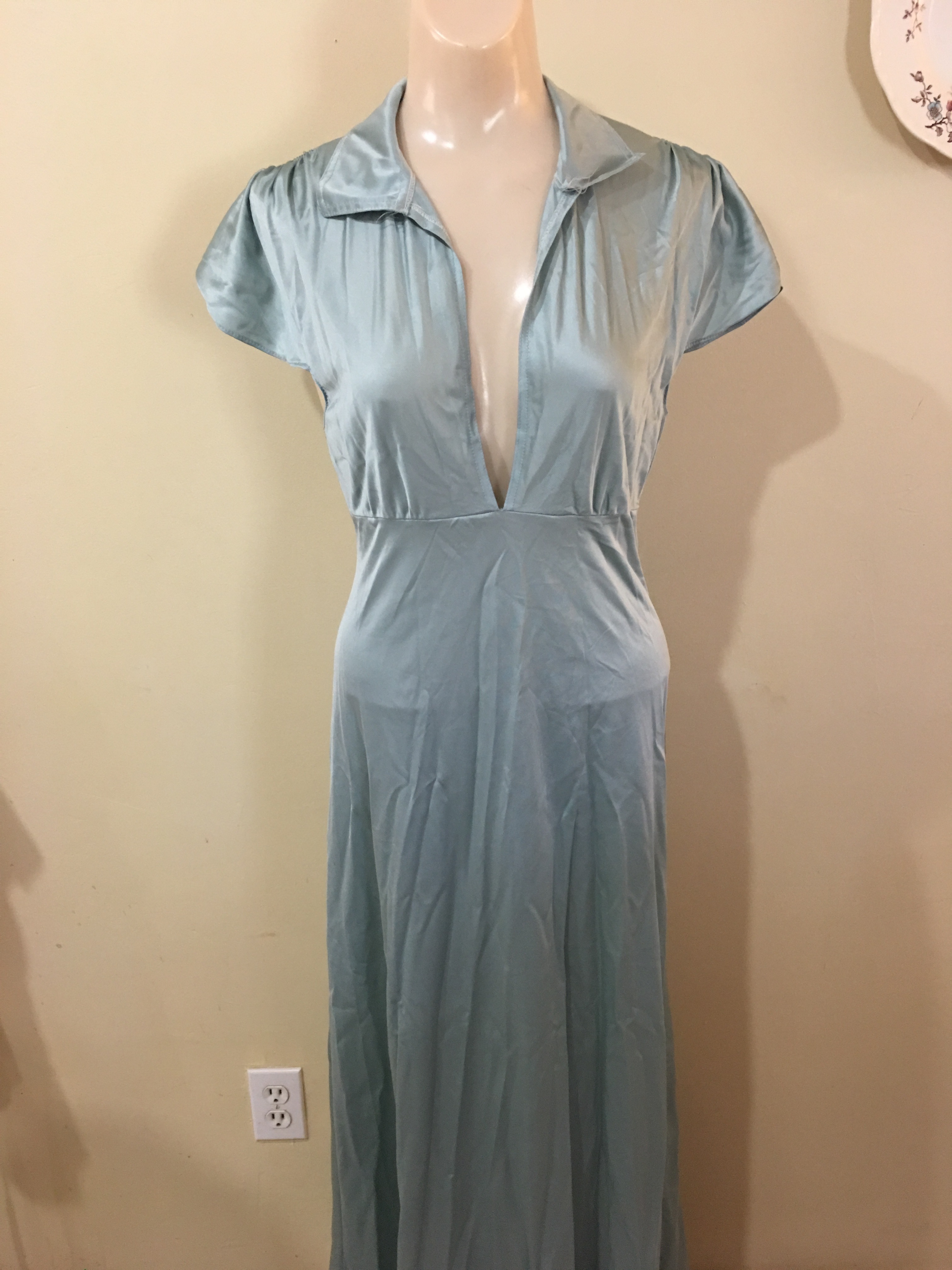 Fabulous vintage gown of polyester from the 1970's. Periwinkle blue with princess sleeves.