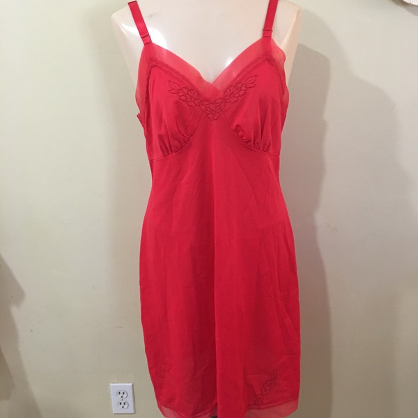 Sweet and sexy 50's slip in red. features Lace detail at bust and hem.