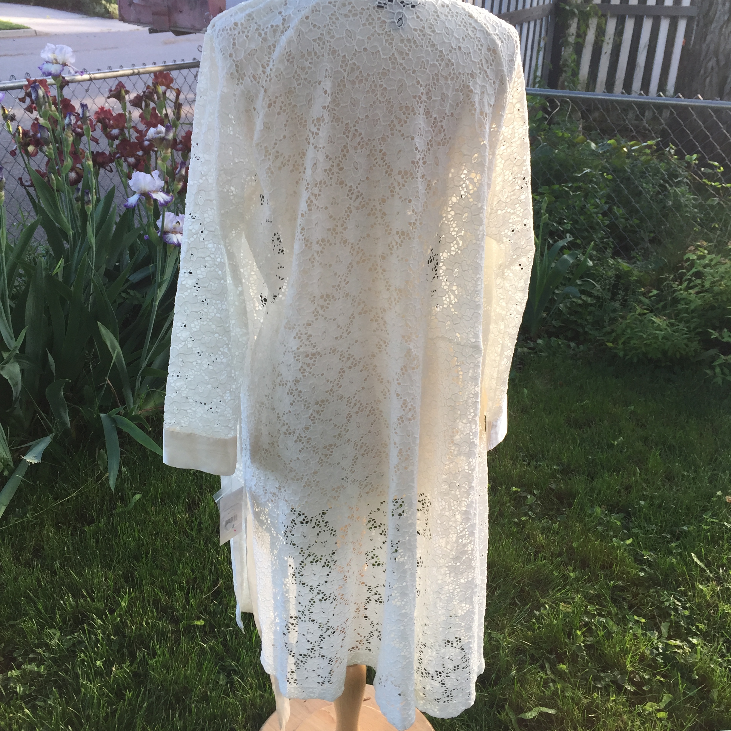 New with Tags beautiful Robe. Lady in lace cream or off white color.
