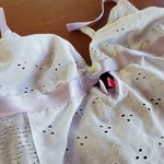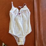 Lingerie bodysuit, white eyelet lace and mesh. White with lavender accents. Wore once.