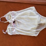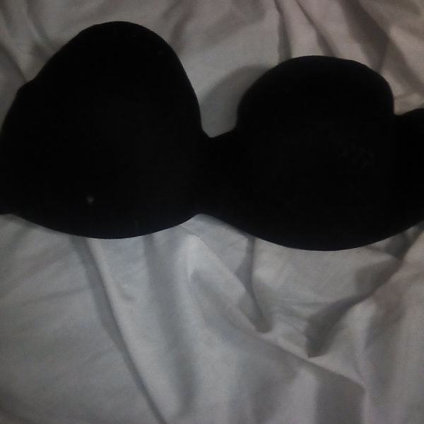Black bandeau bra with fringe. Has padding. More visible fading of the trim.