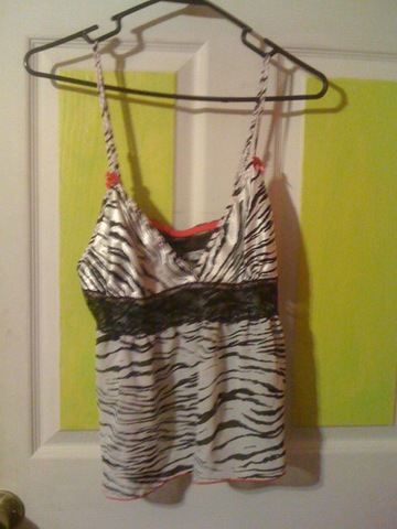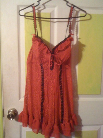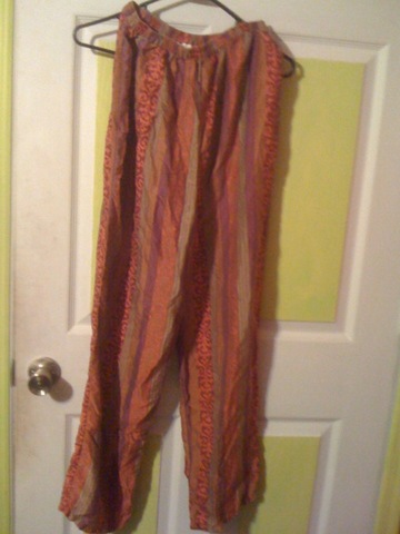 Got from another rehasher, but never wore it. Very cute with hot pink ribbon around the top, the bottom, and around the bottoms of the legs of the PJ's. Will be a bit picky about what I trade them for. :)