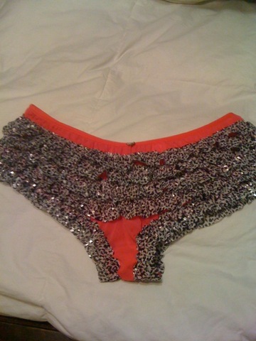 All never been worn at all. One is silky purple victorias secret size xs. The zebra ones are size medium and are thongs. Then theres pink zebra ones size large.