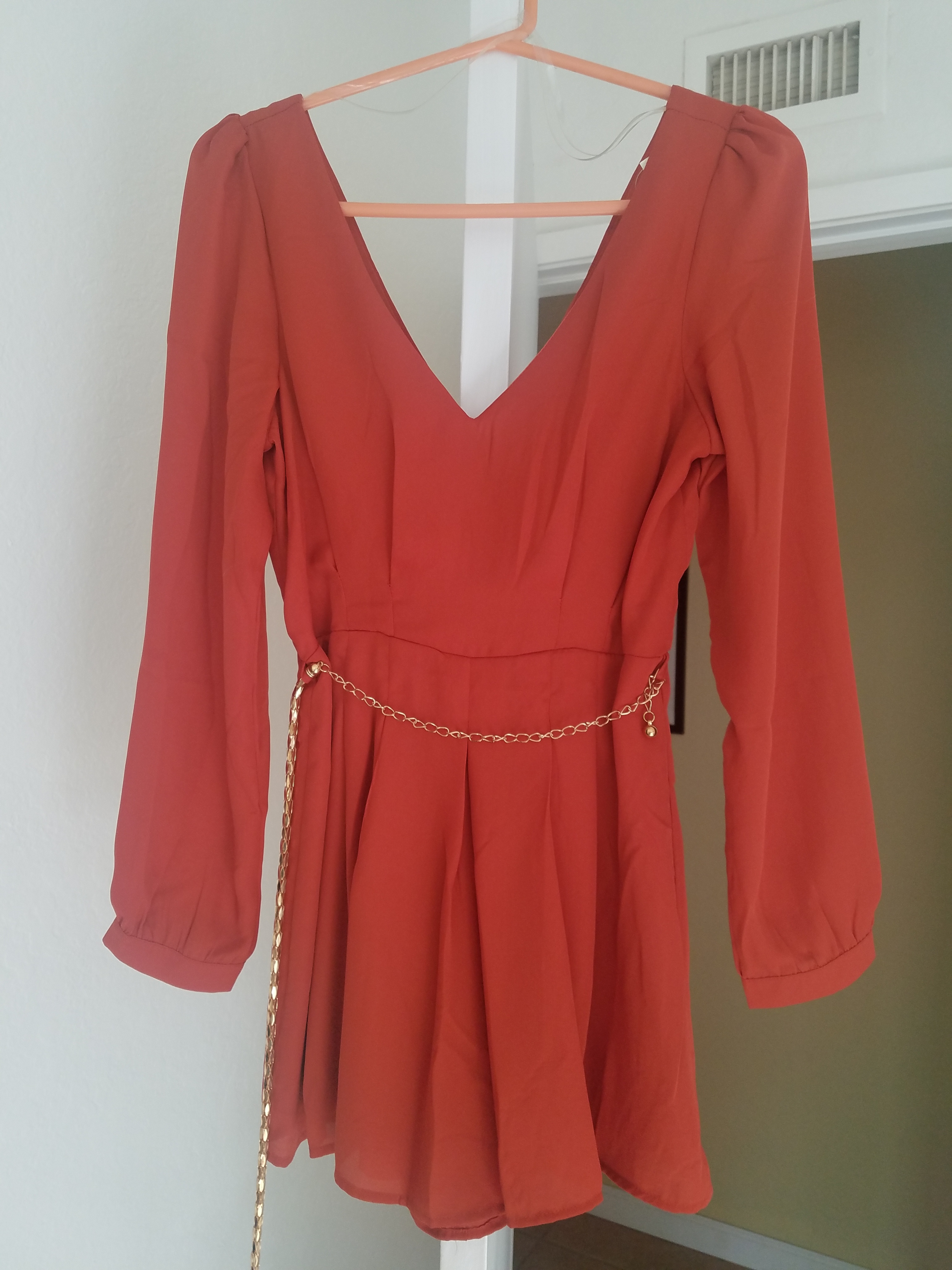 Women’s Jumpsuit size Large brand new with tags. Just a little too low cut for me. Looks beautiful on. Belt that ties comes with it.