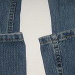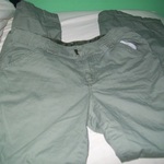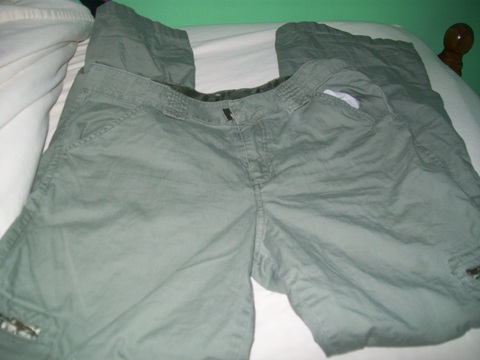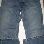 I never wore these, but I must have lost the tag at some point. Black Dockers Classic Fit slacks, made of a very soft material, and a pleat permapressed down each leg (at least I think it's permanent, I haven't put them in the dryer. The cut just isn't for me. I also couldn't find a size tag in them, but my guess is they are a 6 or an 8.