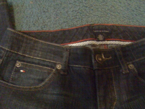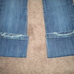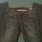 Like new regular dark wash with tan stitch 5 pocket zip fly. Only worn twice. Just a little big on me. These are soo comfortable!