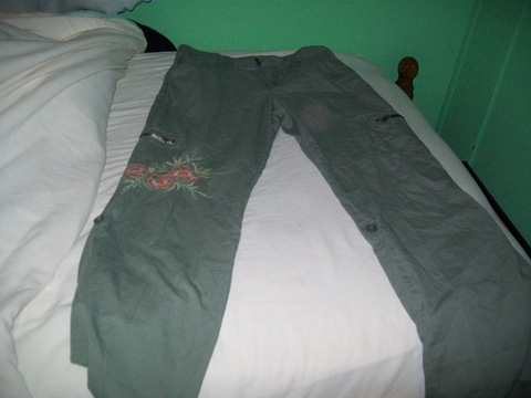I bought these on a road trip through venice beach CA. Has a small hole on one knee...so i put "meh"