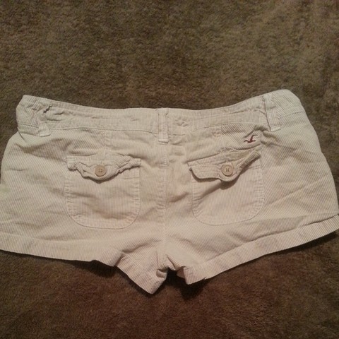 Cute L.e.i denim shorts - very flattering cut and style for curvy figures. Dark wash with cute design on back pockets. Have a little bit of stretch so fit nicely. Cut-off style hem, they came like this, I didn't cut them! Low-rise with a 2 1/2 inseam (short short length!). Marked as good because I wore these a few times, but still in great condition. Junior's 13 or large, approximately a women's 8/10 or medium. 54% Ramie, 27% Cotton, 18% Polyester, 1% Spandex. ~ azurae