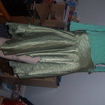 Off-white colored corduroy just below the knee length skirt. Has a small dirt? stain on the back, which is not visable from a distance (that's why I put good instead of excellent). Polyester lined, really warm and cute with boots! Just too long for me.
