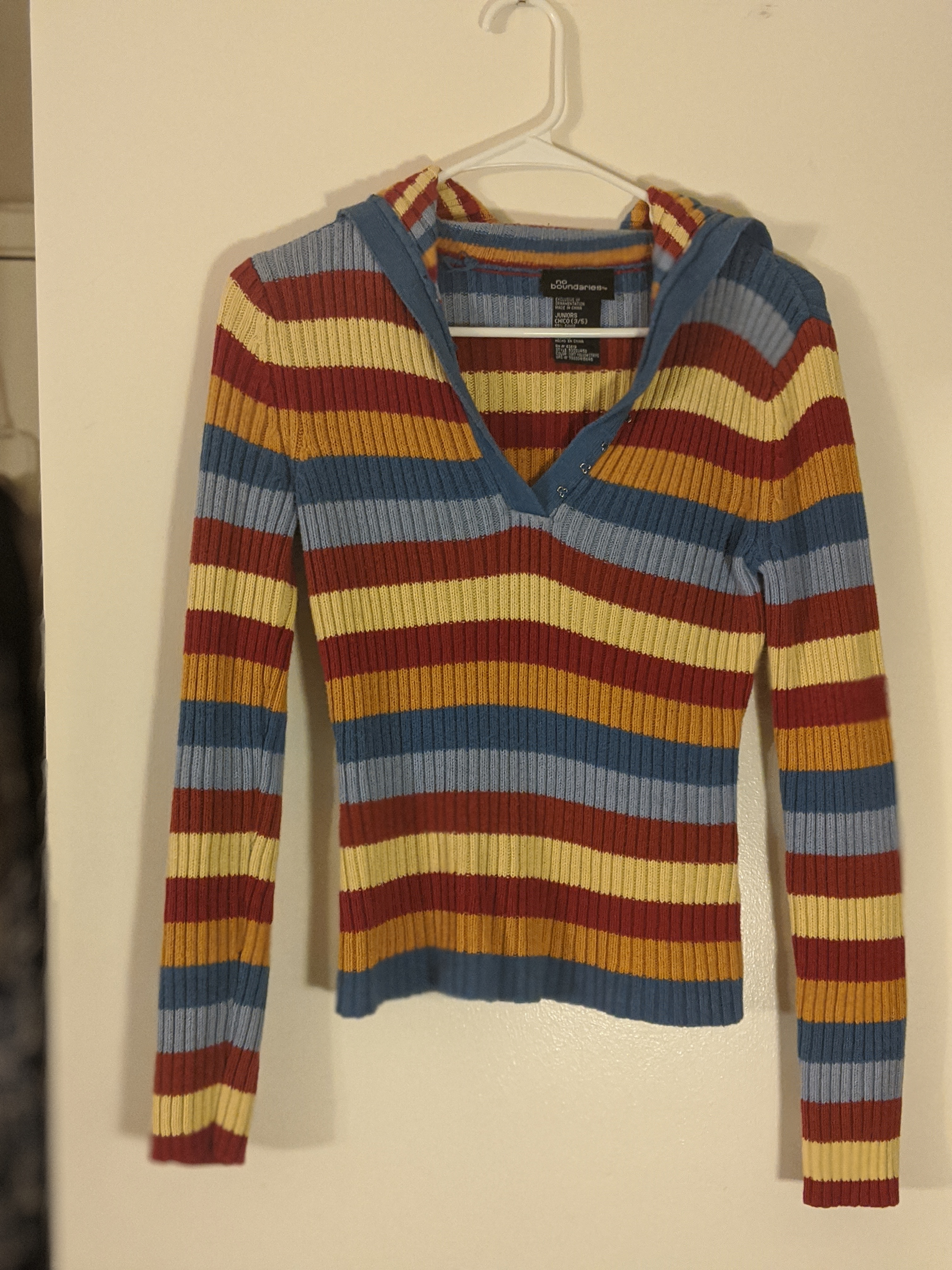 Summer or spring Target sweater. Beige and white color and fitted makes it a cute, versatile staple.
