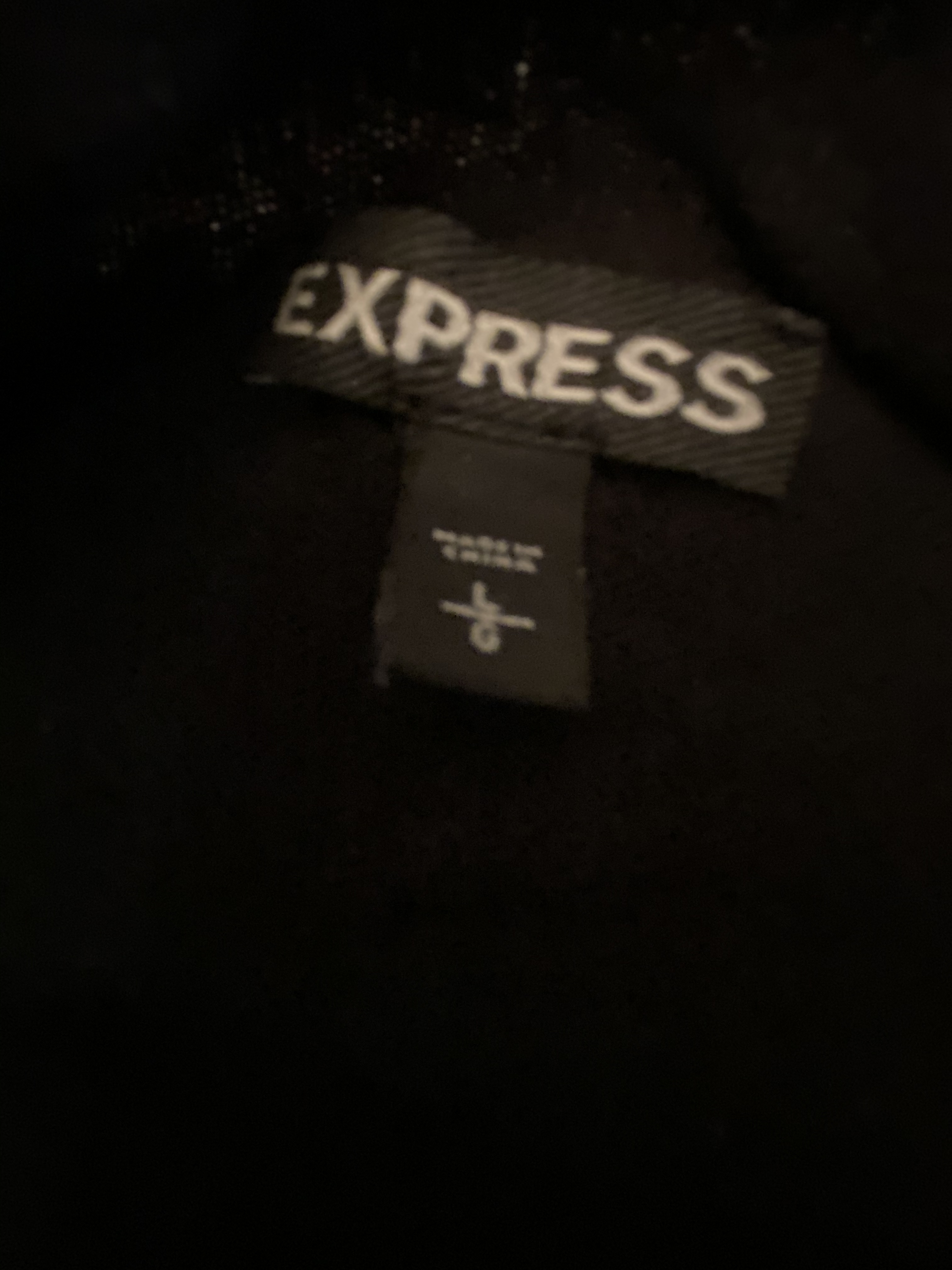 A 97% cashmere black sweater from Lord & Taylor! This sweater is very high quality and great for work, street wear, events, etc. This sweater has a fold down neckie style collar.