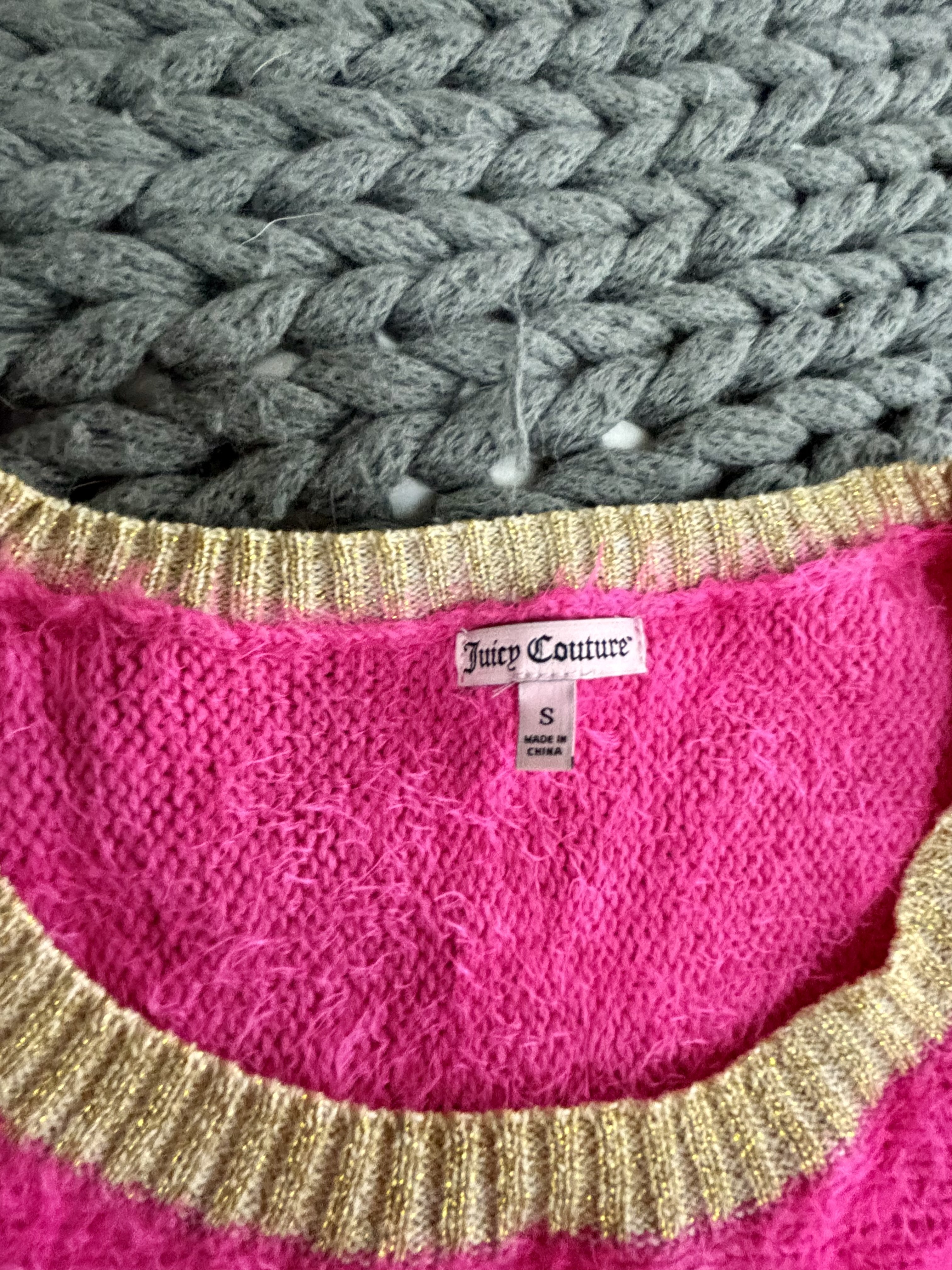 Fuzzy super soft hot pink and gold juicy Couture sweater