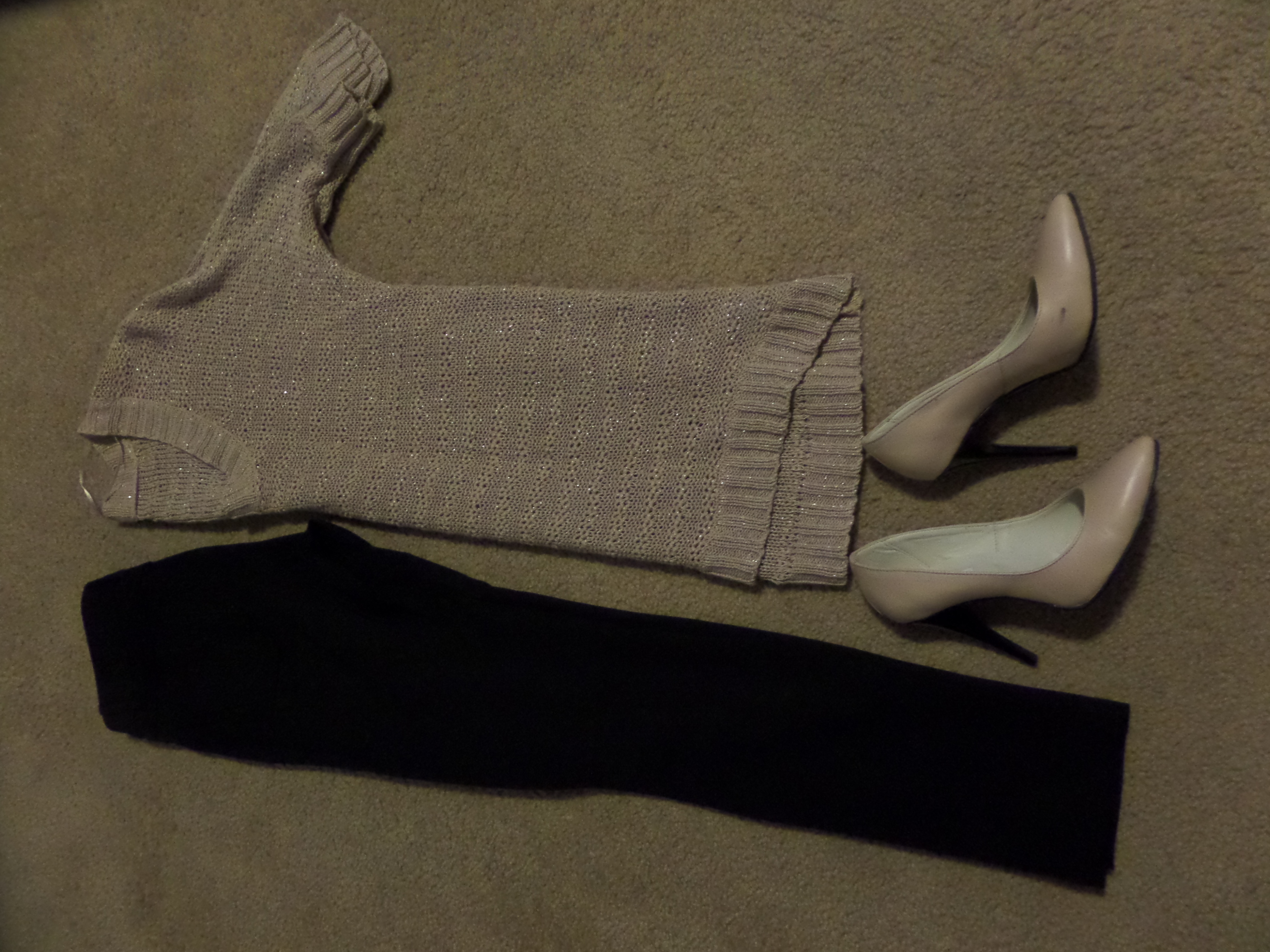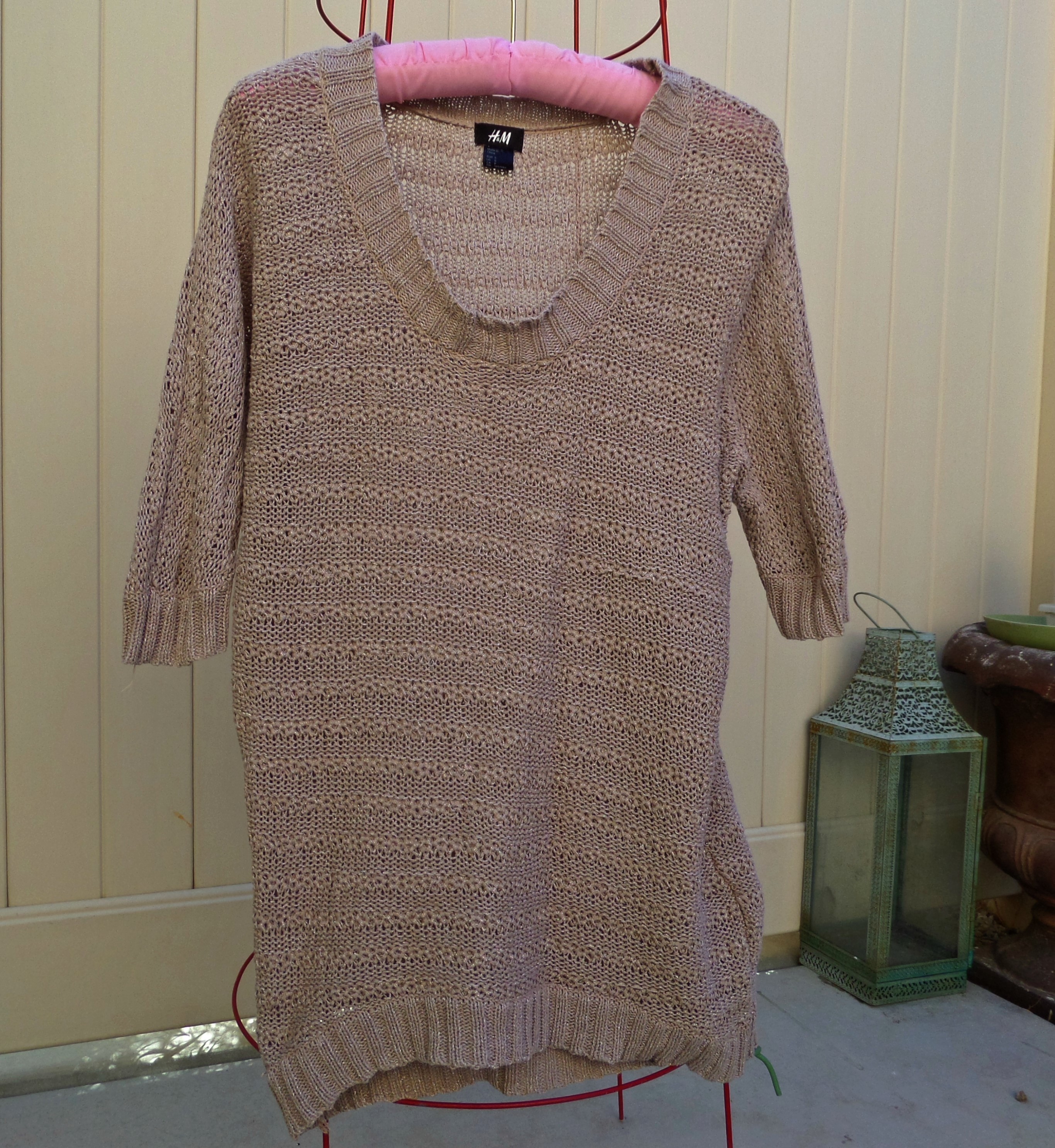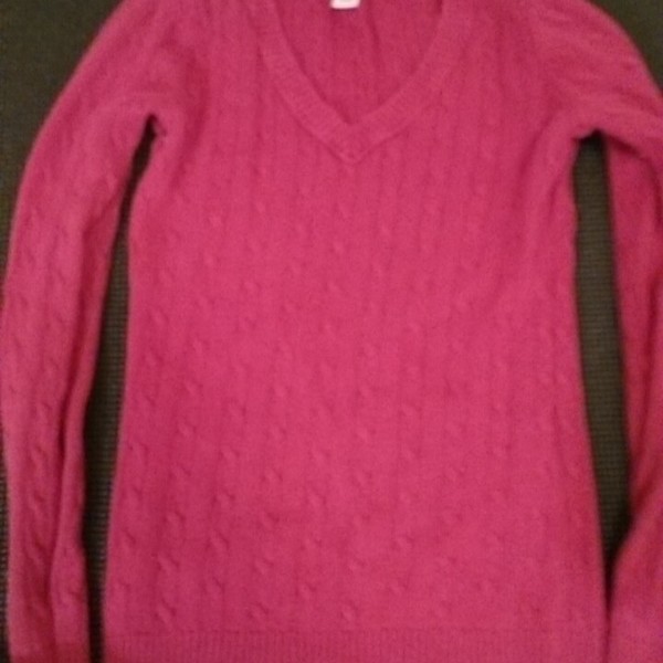 Old Navy black sweater size medium. This sweater runs small, I would say fits more of a XS-S. The sleeves fit tight. 100% cashmere. It's super soft! Worn a few times, but the sleeves are too tight on me.