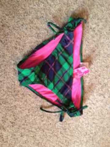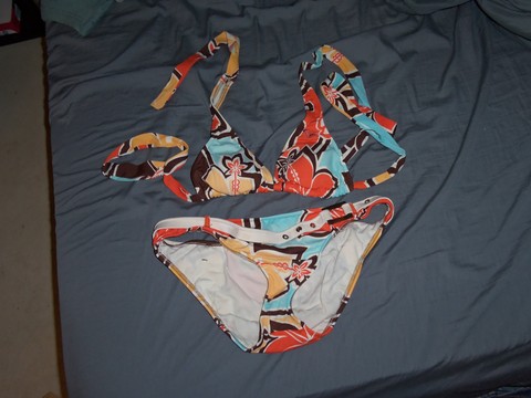 Practically new, used twice at the most. Swimming set : top and botton. The top has got a padded bra but it's such a nice pattern and made so that it doesn't even seem as a smimming top and could be used as a normal top if you don't mind the feeling of the swim-material.